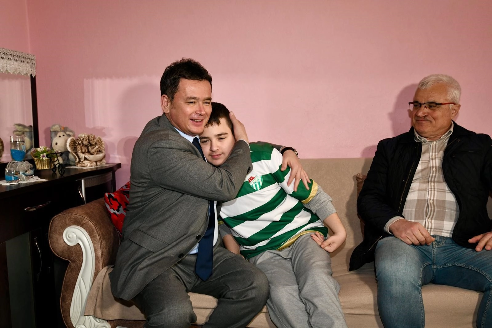İstiklal Mahallesi’nde yaşayan otizmli Yunus Emre Erdem, vatandaş ile belediye arasında iletişim köprüsü olan Osmangazi Çağrı Merkezi’ni arayarak Osmangazi Belediye Başkanı Erkan Aydın’dan doğum günü için Bursaspor forması talep etti. Çağrı merkezine ulaşan bu anlamlı istek üzerine harekete geçen Başkan Erkan Aydın, İstiklal Mahalle Muhtarı Mümin Gözyılmaz ile birlikte Yunus Emre’yi evinde ziyaret ederek gönülleri ısıtan bir sürprize imza attı.