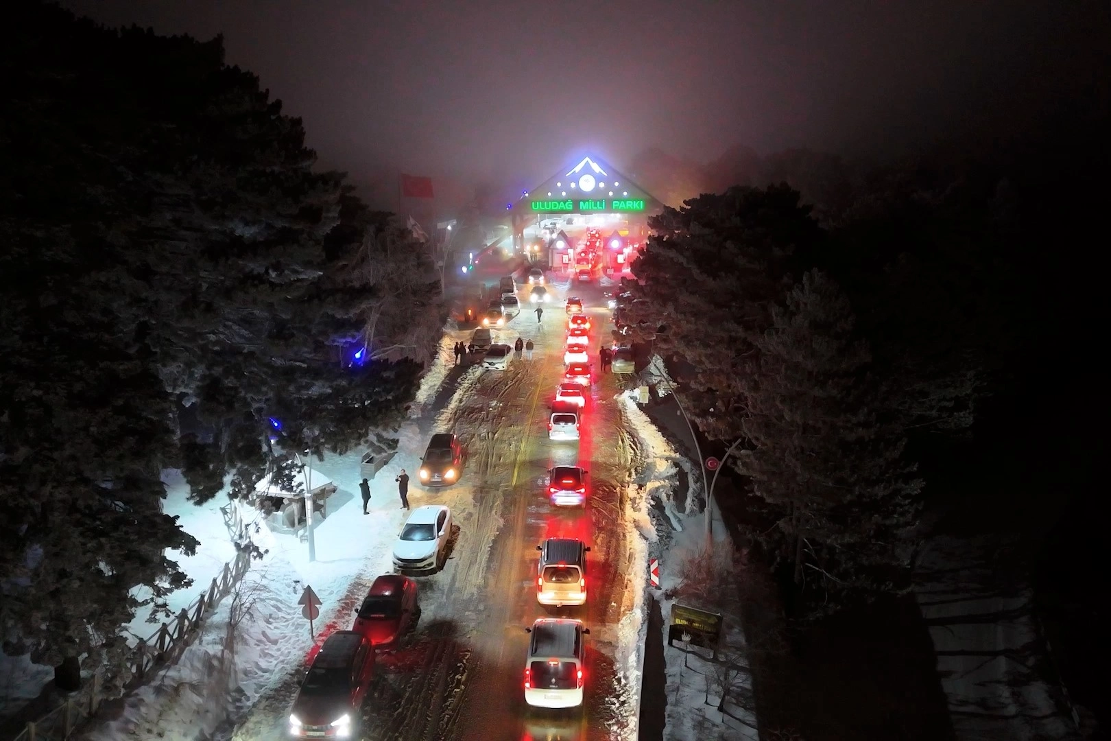 Uludağ’da kar yağışıyla birlikte yılbaşı hareketliliği başladı. Kar yağdı, Uludağ’a akın başladı; Milli Park gişelerinden her 10 saniyede bir araç geçti. Saatte yaklaşık 500 aracın geçiş yaptığı Uludağ yolunda yoğunluğa rağmen herhangi bir aksama yaşanmadı.
