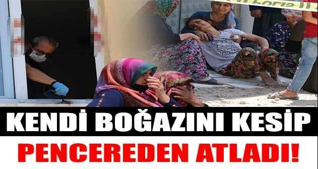 Olay, saat 14.00 sıralarında Karşıyaka Mahallesi 2377 Sokak'ta meydana geldi. Psikolojik sorunları nedeniyle tedavi gördüğü belirtilen Ali İ. bıçakla kendi boğazını kestikten sonra ikinci kattaki evlerinin penceresinden atladı.