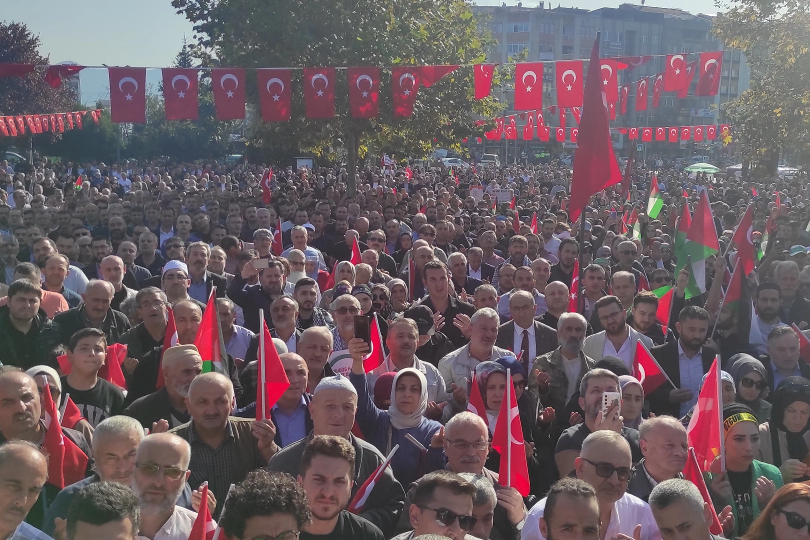 Kocaeli'de yaklaşık 5 bin kişi Filistin'e destek yürüyüşüne katılarak İsrail'i protesto etti. Sloganlar atan vatandaşlar, hayatını kaybeden Filistinliler için dualar etti. Kocaeli'de binlerce kişi Filistin'e destek vermek, İsrail'i protesto etmek için yürüdü. İzmit Yürüyüş Yolu'nda buluşan yaklaşık 5 bin kişi, "kahrolsun İsrail" sloganları attı. 250 sivil toplum kuruluşunun öncülüğünde düzenlenen yürüyüşe, Kocaeli Büyükşehir Belediye Başkanı Tahir Büyükakın, milletvekilleri, ilçe belediye başkanları ve siyasi parti temsilcileri de katıldı. Ellerindeki Türkiye ve Filistin bayraklarıyla yürüyen kalabalık, İsrail'i protesto etti. Programda hayatını kaybeden Filistinli vatandaşlar için de dua edildi.