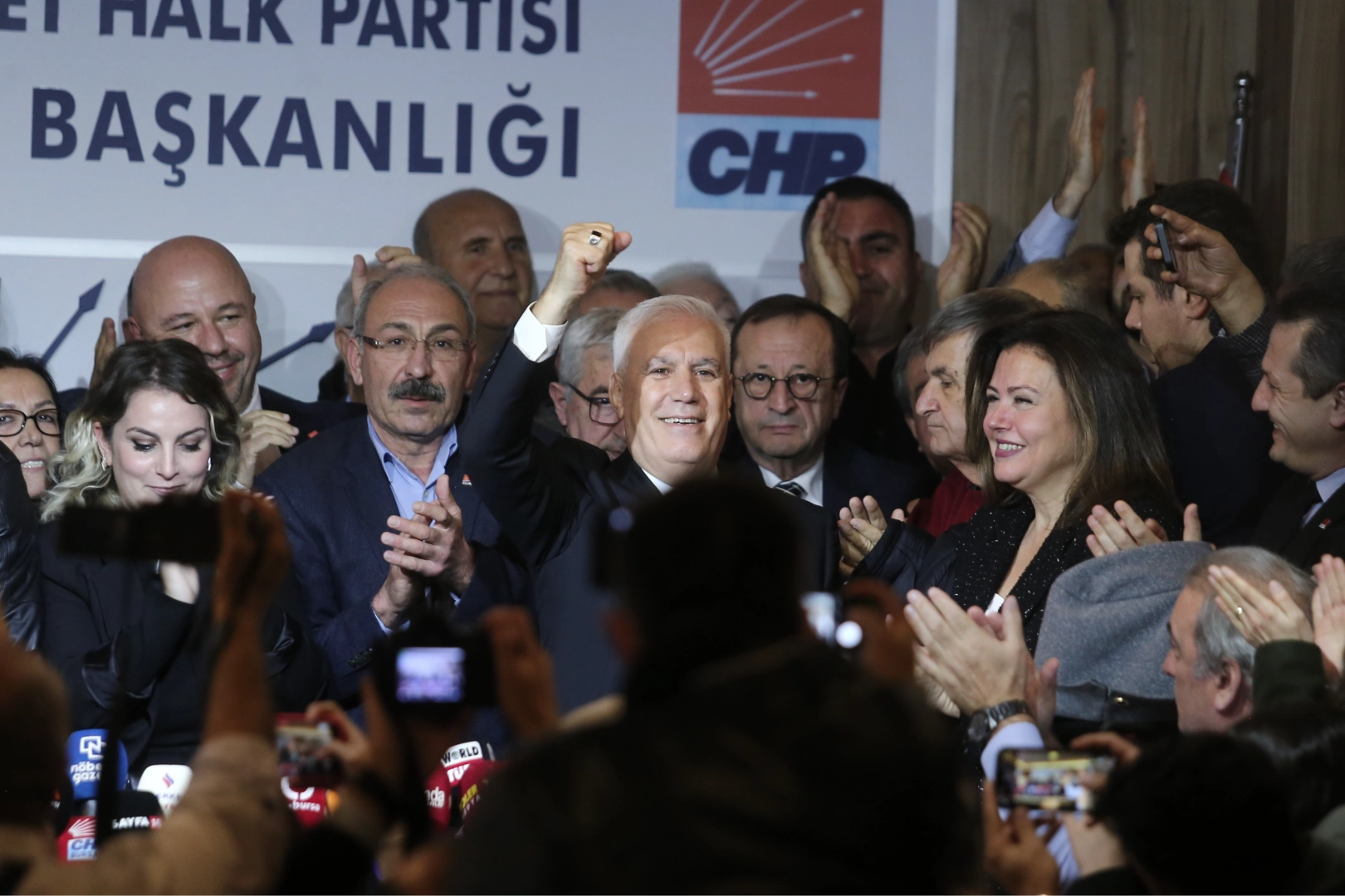 Konuşmaların ardından parti önünde toplanan yüzlerce kişi meşaleler yakarak Bozbey'in adaylık açıklamasını kutladı.