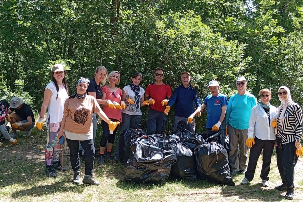Bursa Büyükşehir ve Mustafakemalpaşa Belediyesi'nin destekleriyle bir araya gelen 15 kişi yanlarında getirdikleri poşetlere günübirlikçilerin, ziyaretçilerin ve piknikçilerin bıraktığı çöpleri topladı.