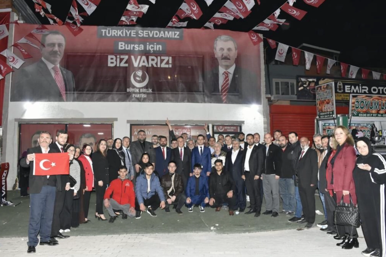 Büyük Birlik Partisi’nin Osmangazi Seçim Bürosu açılışı milletvekili adaylarının katılımı ile gerçekleşti. Vatandaşların da yoğun bir katılım gösterdiği Büyük Birlik Partisi’nin Fatih Mahallesi’ndeki seçim bürosu açılış töreni mehter marşı, saygı duruşu, istiklal marşı ve Kuran-ı Kerim tilaveti ile başladı. Kuran’ı Kerim okunmasının ardından konuşmalara geçildi. Milletvekili adayı İsmail Demirin açılış ve selamlama konuşması ile başlayan program ,Büyük Birlik Partisi Bursa İl Başkanı Haldun Filizli “Osmangazi ilçemizin seçim bürosu acılısına hepiniz hoş geldiniz. Biz gücümüzü enerjimizi genç kardeşlerimizden alıyoruz. Büyük Birlik Partisi 30 yıl sonra ilk kez barajsız seçime giriyor. Kendi logo ve adaylarımızla seçime gireceğiz. Yoğun bir şekilde çalışmalarını devam ettiren teşkilatımızın adaylarımızın emeklerini Cenab-ı Allah inşallah ziyan etmez. Teşkilatlarımız çok iyi çalışıyor. Genel Başkanımız Bursa’ya geldiğinde biz her iki bölgeden en az birer milletvekili kazanacağımızın sözünü vermiştik.. Bugün burada daha fazlasının enerjisini görüyorum. Bu iki, üç, dört olacak.” Diyerek konuşmasını sona erdirdi. Filizli’nin ardından konuşmaya gelen Büyük Birlik Partisi Genel Başkan Yardımcısı ve Bursa 1. Bölge 1. Sıra adayı Ekrem Alfatlı, “Öncelikle seçim büromuzun açılmasına vesile olan İsmail Demir kardeşimize, bundan sonra açılacak olan onlarca seçim bürolarımızın ,mahallemize kentimize ülkemize hayırlar getirmesini Cenab-ı Allah’tan diliyorum. Değerli arkadaşlar BBP bundan 30 yıl önce ebedi siyasi liderimiz şehidimiz Muhsin başkanımız ve arkadaşları tarafından Adriyatik’ten Çin Seddine kadar kaynaşmış ve birleşmiş Türk İslam hayali ile ortaya çıktı. Kürdü’, Türkmeni ,Çerkez ‘i Alevi’si ,sunnisi kim kendini nasıl ifade ediyorsa biz Büyük Türk Milletiyiz ve hepimiz bir kilimin desenleriyiz .Biz her şeyi tartışabiliriz. Bizim tartışmayacağımız konular kırmız çizgimiz bellidir. Allah’ın birliği, Peygamberimizin Risaleti ,ülkemizin birliği ve bütünlüğü, devletimiz ,bayrağımız milli birliğimiz dışında her şeyi konuşabiliriz. Değerli misafirler, Büyük Birlik Partisi Anadolu insanımızın karnı tok başı dik bir şekilde iktidara uzanma eli olma umudu ile ortaya çıktı.” Dedi.