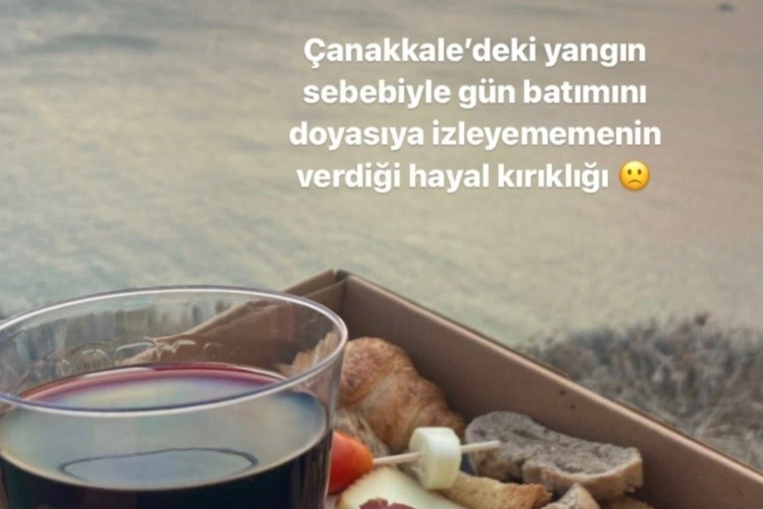 "Çanakkale'deki yangın sebebiyle gün batımını doyasıya izleyememenin verdiği hayal kırıklığı" yazarak paylaştığı fotoğraf, kamuoyunda çok büyük tepki topladı.