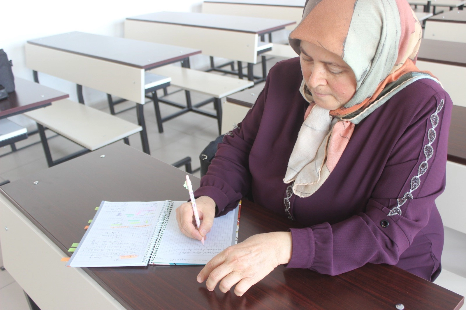 Konya'nın Karapınar ilçesinde çocukluk hayalini gerçekleştiren Fadime Küçük, 50 yaşında kazandığı üniversitede okuluna devam ediyor. Konya'nın Karapınar ilçesinde yaşayan 2 çocuk annesi 50 yaşındaki Fadime Küçük, ilkokul ve ortaokulu bitirdikten sonra eğitimine maddi imkansızlıklar nedeni ile devam edemedi. Daha sonra evlenen Fadime Küçük 2 çocuk sahibi oldu. Evlendikten sonra üniversite okuma hayalini aklından hiç çıkarmayan Küçük, zamanının çoğunu çocuklarına ve evine ayırdığı için eğitimine devam edemedi. Fadime Küçük'ün oğlu Murat ile kızı Gülsüm Küçük ise üniversite eğitimlerini tamamladı. Çocuklarını üniversite mezunu yapan ev hanımı Küçük, çocuklarından aldığı ilham ile önce lise öğretimini tamamlamanın sevincini yaşadı. Fadime Küçük, çocuklarının ve eşinin teşviki ile bu yıl girdiği Yükseköğretim Kurumları Sınavı'nda (YKS) Selçuk Üniversitesi Karapınar Aydoğanlar MYO Süt ve Süt Ürünleri Bölümünü kazandı. "Çocuklarım bana ders çalıştırarak büyük destek verdi" Fadime Küçük, hiçbir zaman azmimi yitirmediğini, üniversite okumanın çocukluk hayali olduğunu ifade ederek, "Ev işleriyle uğraştığım zamanlarda bile aklım hep dersteydi. Bir an evvel işlerimi bitirip ders çalışmak istiyordum. Çocuklarım da bana ders çalıştırarak büyük destek verdi. Üniversiteli çocuklarımın üniversiteli anneleri olması için çok çalıştım. Eşimin ve çocuklarımın büyük desteği oldu. YKS sınavında 250 puan ile üniversiteye yerleşerek hem 32 yıllık hayalimi gerçekleştirmenin hem de diğer kadınlara örnek olmanın mutluğunu yaşadım” dedi. "İstediğim bir şeydi ve hayalimdi" Duygularını ifade edemediğini, çok mutlu olduğunu anlatan Küçük, "Ortaokuldan sonra eğitimime devam edemediğim için çok üzgündüm. Ama hayali gerçekleştirmek için çok çalıştım. Bu konuda eşimin ve çocuklarımın çok büyük desteği oldu. Beni teşvik ettiler. Sıvana girdim ve kazandım. Bu istediğim bir şeydi ve hayalimdi. Ben de heves hiç bitmedi. Aslında ertelenmiş bir hevesti. Çocuklarımı okutup emek harcadım ve sıra bana geldi. Çocuklar büyüdükten sonra onlar da benim hayalimi destekledi. Sınava girmeden biraz çekindim, bu yaşta olur mu, başarabilir miyim diye. Ama onlar beni destekledi. 'Eğitimin yaşı yoktur. Senin içinde ukde kalmış. Biz başaracağına inanıyoruz' diye bana destek oldular. Sonuçlar açıklanıp okul kazandığımı gördüğümde yaşadığım sevinci anlatamam. Okula ilk geldiğimde öğrenciler beni ilk önce okulda öğretim görevlisi zannettiler. Kendileri gibi öğrenci olduğumu söyleyince çok şaşırdılar. Hepsi benim evladım yaşında. Öğretmenlerin hepsi küçük. Bana abla diyorlar. Öğrencilere annelik yapıyorum. İyi ki gelmişim. Okulu bitirince 4 yıllık bölüme geçiş isterim ama ilk olarak bu okulu bitirmek istiyorum. Kadınların da istediklerinde çok şeyi başarabileceğini gösterdim” şeklide konuştu. Aynı okulda öğrenci olan Hasan Kabaklı, “Fadime ablayı ilk olarak kütüphanede görmüştüm ve öğretmen zannetmiştik. Öğrenmenin yaşı olmadığını gösteriyor” diye konuştu.