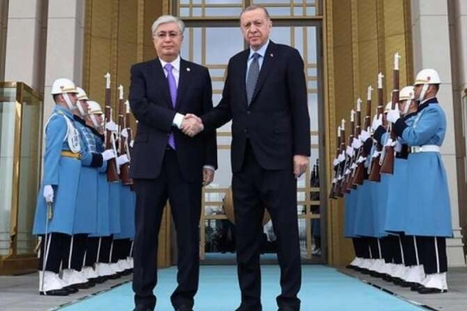 Cumhurbaşkanı Recep Tayyip Erdoğan, Cumhurbaşkanlığı Külliyesi'nde resmi törenle karşıladığı, Kazakistan Cumhurbaşkanı Kasım Çömert Tokayev ile görüştü.