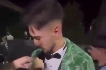 Salonda kısa süreli şaşkınlık yaşanırken, davetliler o anlar cep telefonlarıyla görüntüledi.