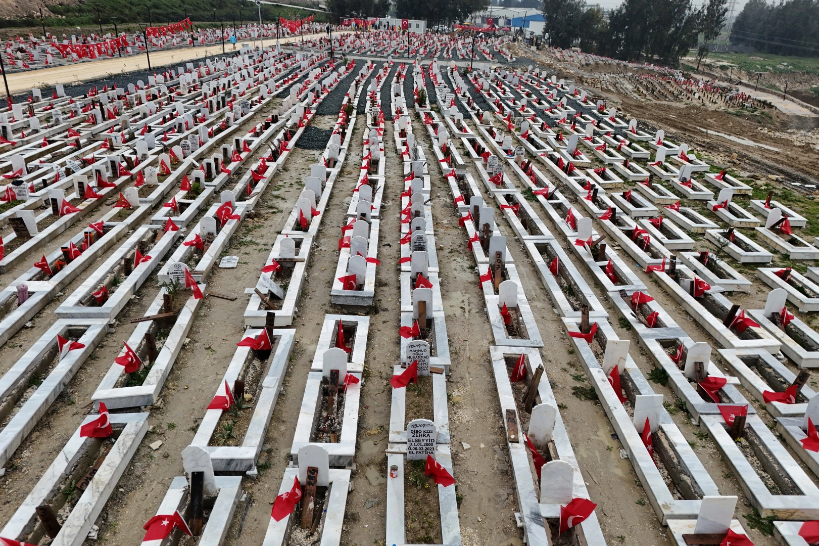 Türkiye’de 11 ilde yıkıma yol açan 6 Şubat depremlerinin üzerinden 1 yıl geçti. Depremde ölenlerin defnedildiği Reyhanlı yolu üzerindeki Deprem Mezarlığı Türk Bayrakları ile donatıldı. Her mezarlığın başına bir Türk bayrağı dikildi. Depremde hayatlarını kaybeden çocukların mezarları başına bırakılan oyuncaklar dikkat çekti. Depremzede yakıları mezar ziyaretinde dualar okuyup gözyaşları döktü. Öte yandan depremde hayatlarını kaybederler için hatim indirildiği duyuruldu. Türk bayrakları ile dolatılan mezarlık havadan da görüntülendi.