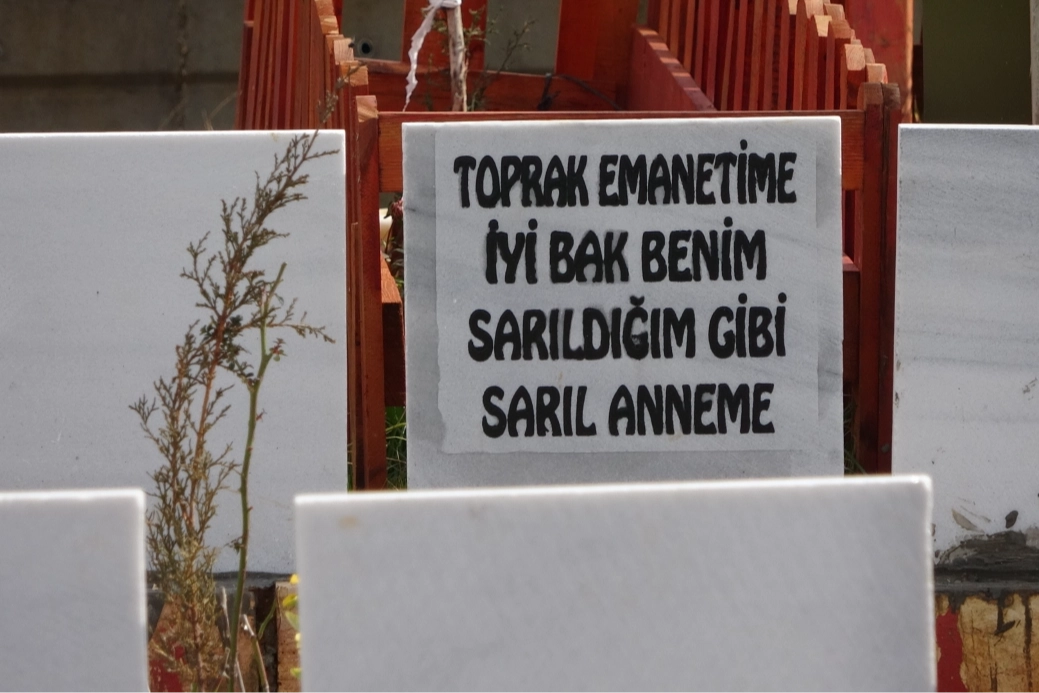 6 Şubat 2023 Kahramanmaraş merkezli meydana gelen depremlerde Adıyaman’da binlerce vatandaş yıkılan binaların enkazları altında kalarak hayatını kaybetmişti. Adıyaman Yeni Mezarlıkta toprağa verilen depremzede vatandaşların mezar taşlarında yazan yazılar hüzünlendiriyor.