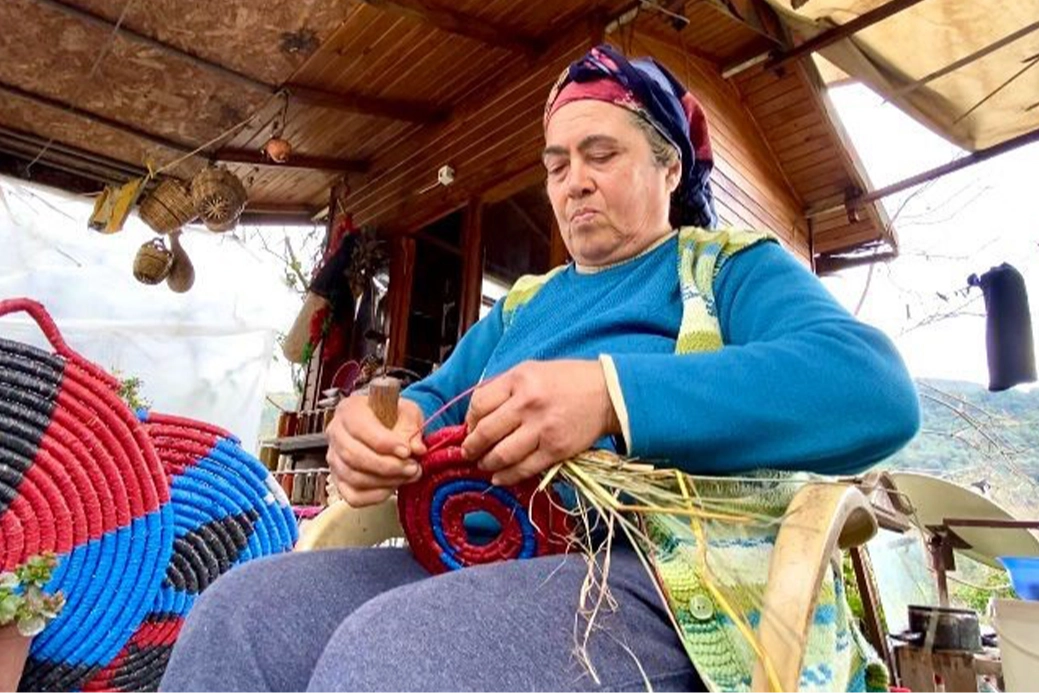 Depremin yaralarının sarıldığı Hatay’da aile ekonomisine katkı sağlamak isteyen Samandağı ilçesi Hıdırbey Mahallesi’nde yaşayan 62 yaşındaki Neriman Şahin, kolları sıvadı. Mevsiminde topladığı buğday saplarını boyama işlemine sokan Şahan, bu sapları ilmik ilmik örerek tepsi haline getiriyor. Sabırla ilmik atan kadın, kazandığı parayı ise aile bütçesine destek olarak kullanıyor. Şahan’ın elinde şekil alan tepsiler; 150 TL ile 300 TL arasında alıcı buluyor.