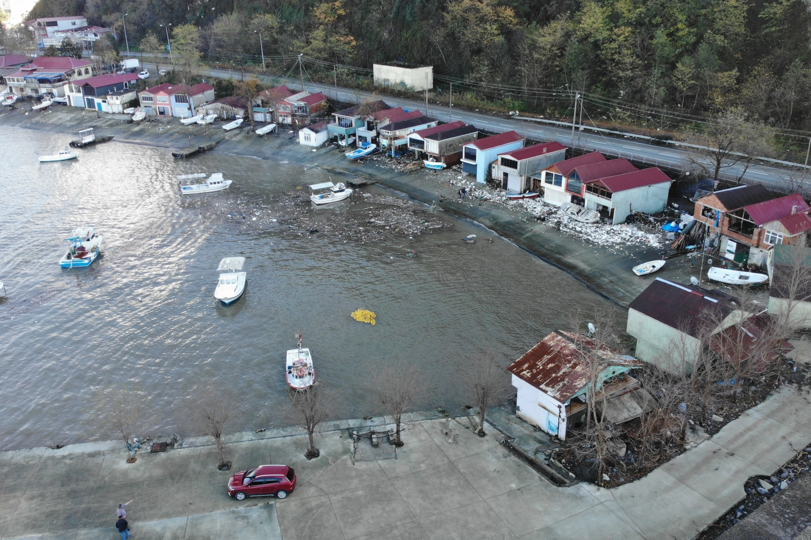 Artvin’in Kemalpaşa ilçesinde fırtınada büyük hasar gören balıkçı barınağında suların çekilmesi ile hasar tespit çalışmalarına başlandı. Artvin’de önceki gün başlayan şiddetli yağış bazı bölgelerde heyelanlara neden olurken, fırtınada dev dalgalar sahil bandındaki karayolu ve balıkçı barınağında hasara yol açmıştı. Dalgakıranları aşan dev dalgalar ile Kemalpaşa ilçesinde bulunan balıkçı barınağındaki barınaklar yıkılmış, bazı tekneler batmıştı. Deniz suyunun çekilmesiyle felaketin boyutu ortaya çıktı. Geçimini balıkçılıkla sağlayan vatandaşlar, ekmek teknelerini kurtarmak için seferber oldu. Dalgıçlar ve vinç yardımıyla tekneler çıkartılarak, tamir için atölyelere çekildi. Kemelpaşa Su Ürünleri Kooperatifi Başkanı Saim Çakıcı, ”Büyük bir afet yaşadık. 56 yaşındayım, 10 yaşından beri balıkçılık yapıyorum. Ama dünkü gibi afet ilk defa gördüm. 3 kayığımız battı. Zararımız çok, bir barakamız zarar gördü. Devlet büyüklerimiz aradı sağ olsunlar. Hasar tespit çalışması yapıldı. Zararımız büyük, karşılanması talebinde bulunuyoruz” dedi. Teknesi batan balıkçı Erkan Kocal ise, ”Balıkçı barınağında benim teknem battı. Dört çocuğum var, bu işle ailemi geçindiriyorum. Ağım, her şeyim gitti. Hiçbir şeyim kalmadı” ifadelerini kullandı.