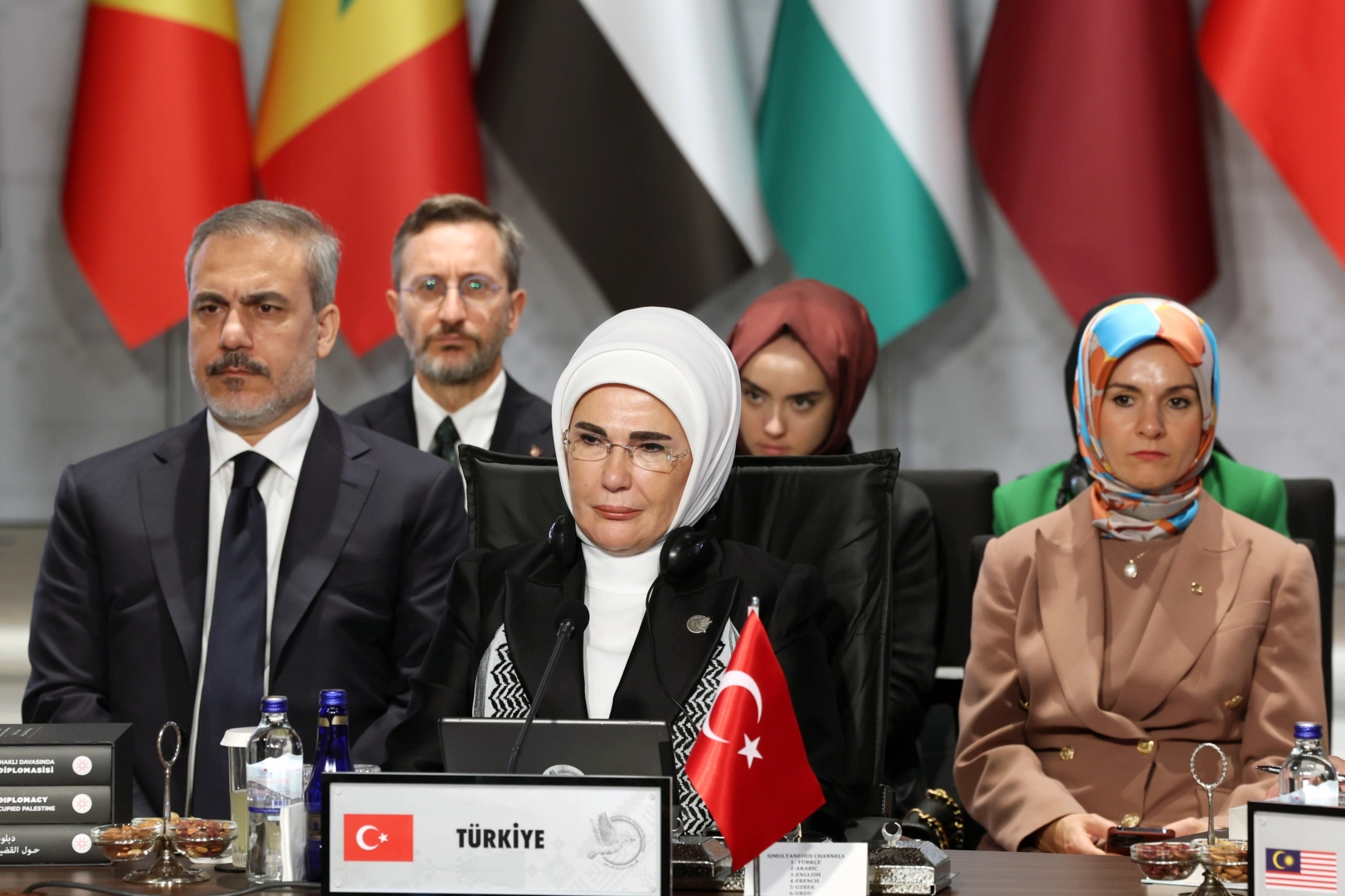 Cumhurbaşkanı Recep Tayyip Erdoğan’ın eşi Emine Erdoğan’ın ev sahipliğinde İstanbul’da birçok ülke liderinin eşlerinin katılımı ile “Filistin İçin Tek Yürek Zirvesi” düzenlendi. Dolmabahçe’deki Cumhurbaşkanlığı Çalışma Ofisi’nde gerçekleşen zirvenin ardından ortak basın toplantısı düzenlendi. Burada konuşan Emine Erdoğan, Filistin ve İsrail arasındaki sorunun ortadan kalkması için iki devletli bir çözüm dilediklerini söyledi. “Filistin topraklarında yaşanan insani trajediden derin bir endişe duyuyoruz” Emine Erdoğan, “Bu tarihi buluşmanın Filistin ve bölgemizdeki barış ve huzurun tesisi için bir vesile olmasını diliyorum. Zirvenin bir sonucu olarak bugün İstanbul’dan tüm dünyaya şu ortak çağrıyı yapıyoruz. Bizler, dünyanın farklı ülkelerinden devlet ve hükümet başkanlarının eşleri ve ülke temsilcileri olarak Gazze’deki insani krize uluslararası toplumun dikkatini çekmek ve bilhassa çocuklar, kadınlar, hastalar ve engelliler olmak üzere sivillerin yaşadığı trajedinin sonlandırılması, kalıcı ve adil bir barışın tesisi, uluslararası kamuoyunun insanlığa karşı suç sayılabilecek bu saldırılar karşısında harekete geçmesini sağlamak amacıyla 15 Kasım 2023’te İstanbul’da bir araya geldik. Bizler, 7 Ekim 2023 tarihinden bu yana yaşanan çatışmalar nedeniyle Gazze ve Doğu Kudüs dahil olmak üzere işgal altındaki Filistin topraklarında yaşanan insani trajediden derin bir endişe duyuyoruz. Gazze’ye uygulanan ve uluslararası hukuk ile bağdaşmayan abluka ve ambargonun sebep olduğu insani krizin sivillerin temel ihtiyaçlara erişimine engellediğine ve tam bir insan hakları ihlaline dönüştüğüne dikkat çekiyoruz. 7 Ekim’den bu yana Gazze’de yaşanan trajedide çoğunluğu çocuk ve kadın olmak üzere 11 binden fazla sivilin katledilmesinin uluslararası hukukun en ağır ihlallerinden birini teşkil ettiğini vurguluyoruz. Gayri insani koşullar altında bulunan ve katliam tehdidiyle karşı karşıya kalan hamile kadınların, çocukların, bebeklerin ve hastaların can güvenliğinin bir an önce sağlanması amacıyla acil eyleme geçilmesi gerekliliğini işaret ediyoruz” dedi. “İki devletli bir çözüm diliyoruz” Erdoğan sözlerini, “Filistinlilerin ve İsraillilerin çocuklarını huzur ve güven içinde yetiştirebilecekleri iki devletli bir çözüm diliyoruz. Bu çerçevede bizler, devlet hükümet başkanlarının eşleri ve ülke temsilcileri olarak tüm dünyaya Gazze’de süren katliamları durdurmak için derhal ve topyekün harekete geçilmesi, Gazze’de okul, hastane ve diğer tıbbi tesisler, mülteci kampları, Birleşmiş Milletler tesisleri ve ibadethaneler dahil tüm sivil yerleşim yerlerini hedef alan İsrail saldırılarının derhal durdurulması, bu doğrultuda çatışmalara son verecek bir ateşkesin acilen tesisi ve Gazze’deki sivillere engelsiz, yeterli ve güvenli insani yardım temininin sağlanması, mevcut çatışma koşullarında yerinden edilmenin özellikle kadınlar, çocuklar ve yaşlılar üzerindeki ciddi etkisini vurgulayarak, Filistinli sivil nüfusun zorla yer değiştirmesine yönelik her türlü değişimin kesin bir şekilde reddedilmesi, tüm tarafların uluslararası insancıl hukuk ve uluslararası insan hakları hukuku da dahil olmak üzere uluslararası hukuk kapsamındaki yükümlülüklerine derhal ve eksiksiz olarak riayet etmesi çağrısını yapıyoruz. Her vicdan sahibi insanı bu küresel çağrımıza destek vermeye davet ediyorum” ifadeleri ile sonlandırdı. Basın toplantısının ardından konuklar, Cumhurbaşkanlığı İletişim Başkanlığı tarafından zirve çerçevesinde düzenlenen “Gazze: Direnen İnsanlık” isimli sergiyi gezdi. Zirveye 14 ülkeden lider eşleri ve temsilciler katıldı “Filistin İçin Tek Yürek Zirve”sine Katar Emiri Şeyh Temim bin Hamed Al Sani'nin annesi Şeyha Moza binti Nasır, Senegal Cumhurbaşkanı Macky Sall'ın eşi Marieme Faye Sall, Malezya Kraliçesi Tunku Azizah Aminah Maimunah Iskandariah, Özbekistan Cumhurbaşkanı Şevket Mirziyoyev'in eşi Ziroat Mirziyoyeva, Kongo Cumhuriyeti Cumhurbaşkanı Denis Sassou N'Guesso'nun eşi Antoinette Sassou N'Guesso, Bangladeş Cumhurbaşkanı Muhammed Şahabuddin Çuppu'un eşi Rebeka Sultana, Bosna Hersek Devlet Başkanlığı Konseyinin Hırvat üyesi Zeljko Komsic'in eşi Sabina Komsic, Lübnan Başbakanı Necip Mikati'nin eşi May Mikati, İskoçya Bölgesel Başbakanı Hamza Yusuf'un eşi Nadia El-Nakla, Libya Başbakanı Abdulhamid Dibeybe'nın eşi eşi Amina Ali Muhammed El-Shavush El-Dilawi, Filistin Özel Temsilcisi Ferial Kamel Abdalrahman Salem, Birleşik Arap Emirlikleri Dışişleri Bakanı Abdullah bin Zayid en-Nehyan'ın eşi Şeyha Al Yazia Bint Saif Bin Muhammed Al Nahyan, Mısır Planlama ve Ekonomik Kalkınma Bakanı Dr. Hala Elsaid ve Türkmenistanlı diplomat Chinar Rustamova katıldı. Öte yandan Azerbaycan Cumhurbaşkanı İlham Aliyev'in eşi Mihriban Aliyeva, Brezilya Devlet Başkanı Luiz Inacio Lula da Silva'nın eşi Rosangela da Silva ve Venezuela Devlet Başkanı Nicolas Maduro'nun eşi Cilia Flores de toplantıya video mesaj gönderdi.