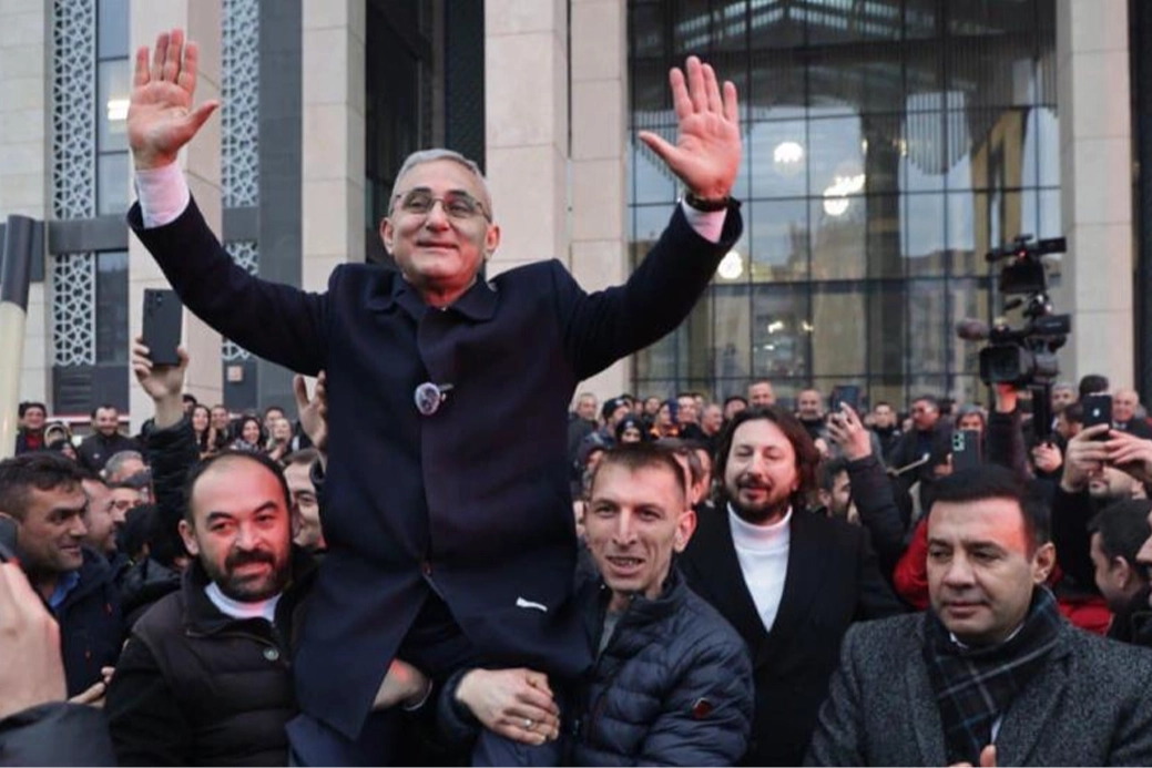 Belediye Başkanı Prof. Dr. Alim Işık, belediyeye gelişinde işçiler tarafından meşale, davul-zurna eşliğinde ve omuzlara alınarak karşılandı.