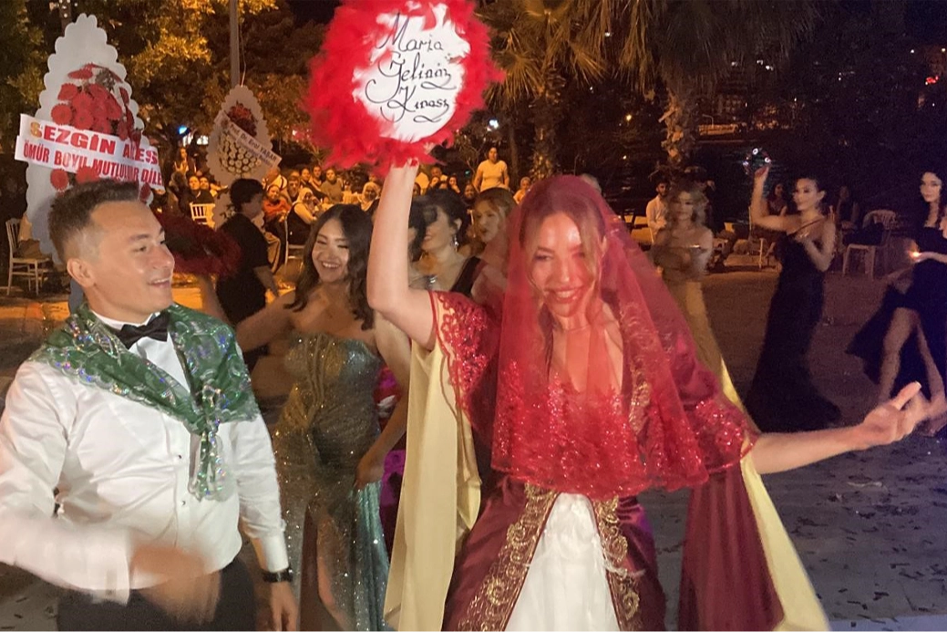 Geçtiğimiz yıl Mart ayında iş gezisi için gittiği Maldivler’de Sibiryalı Mariia Sadnova ile tanışan İlyas Can Kil, 5 dakikalık görüşme sonrasında birbirlerine aşık oldu. Türkiye’ye dönen Kil, Sadnova ile görüşmeyi sürdürdü. Bir süre sonra Mariia’yı Mersin’e davet eden ve ailesiyle tanıştıran Kil, kız arkadaşına ikinci gelişte evlenme teklif etti. Yaklaşık 10 bin kilometrelik mesafe nedeniyle Mariia’nın ailesi başta karşı çıktı ancak aileyi tanıdıktan sonra evliliğe razı oldu. Türkiye’ye hayran kalıp yerleşmeye karar veren Mariia, Türk usulü düğünle evlendi. Kınası yakılan, testi kıran Mariia, Mersin Erdemli’de açık havada yapılan düğünle mesafeleri tanımayarak aşkıyla evlendi. Mersin’in Maldivler’i Ayaş bölgesindeki tarihi mekanları gezip, deniz kenarında vakit geçiren Mariia, mutluluğunu dile getirdi.
