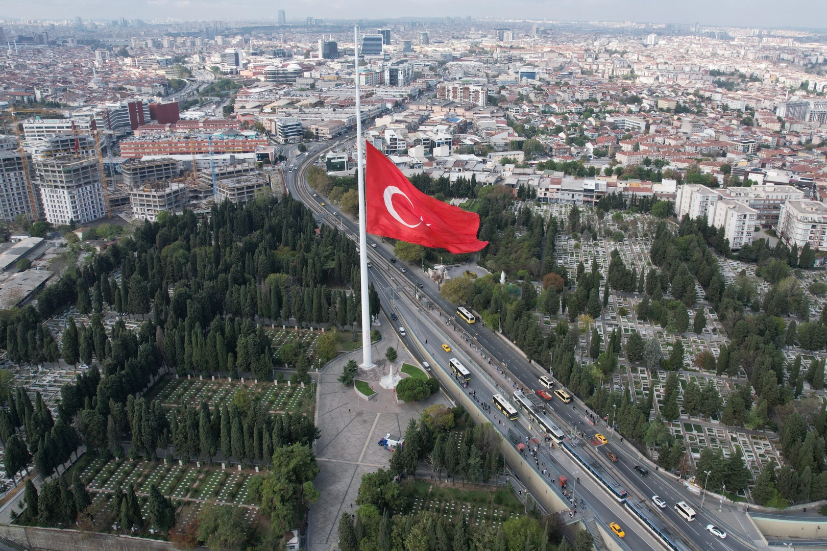 Edirnekapı'da yarıya indirilen Türk bayrağı havadan görüntülendi. Cumhurbaşkanı Recep Tayyip Erdoğan, Filistin'de İsrail'in saldırılarında binlerce kişinin hayatını kaybetmesi nedeniyle Türkiye'de 3 günlük milli yas ilan edildiğini duyurmuştu. Milli yasın ardından İstanbul'da da bayraklar yarıya indirildi. Taksim Meydanı’nda ve Edirnekapı'da yarıya indirilen Türk bayrakları kamerayla görüntülendi. Edirnekapı'da yarıya indirilen Türk bayrağı ise dron kamerasına yansıdı.