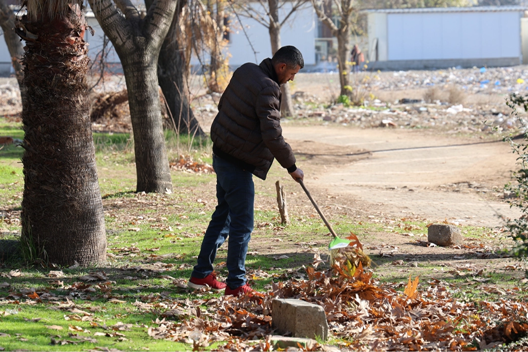 Kahramanmaraş merkezli depremler sonrası enkazdan çıkarılan eşyalar ile kafe oluşturan Mehmet Yalçın, boş zamanlarını da temizlik yaparak geçiriyor. Onikişubat ilçesi Şazibey Mahallesi’ndeki park ve bahçeleri temizleyen Yalçın, çevre temizliğinin önemine vurgu yapıyor.