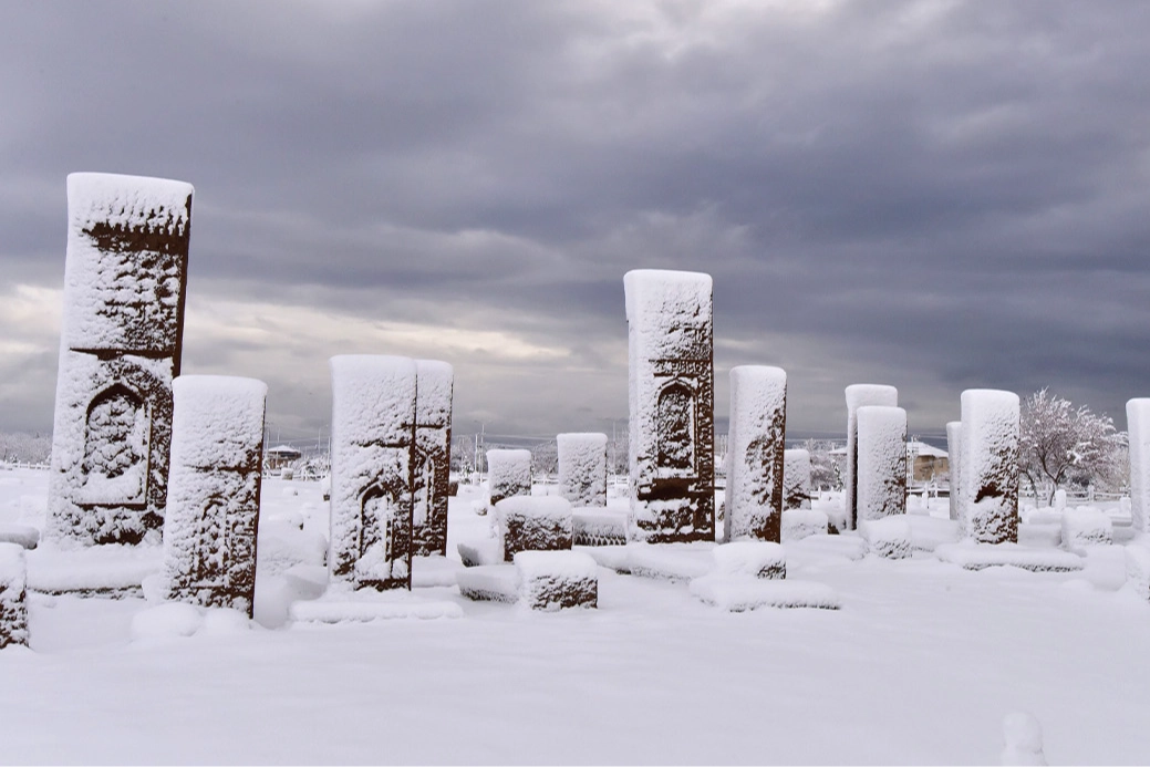 UNESCO Dünya Kültür Mirası Geçici Listesinde yer alan dünyanın en büyük Türk İslam Mezarlığı olma özelliğine sahip Ahlat Selçuklu Meydan Mezarlığındaki tarihi mezar taşlarının karla bütünleşmesi görenleri kendine hayran bırakıyor. ’Anadolu’nun Orhun Abideleri’ olarak da adlandırılan 210 dönümde kurulu Ahlat Selçuklu Meydan Mezarlığındaki mezar taşlarının üzerindeki yazılar, kabartmalar, nakış ve işlemeler, karla bütünleşince seyri güzel görüntüler ortaya çıkarıyor. Boyları 4 metreye kadar varan mezar taşlarının kahverengi tonları ve karın beyaz rengi kartpostallık manzaralar oluştururken, mezarlığı ziyaret eden gezgin ve fotoğrafçılar da ortaya çıkan eşsiz manzaraları fotoğraflıyor.