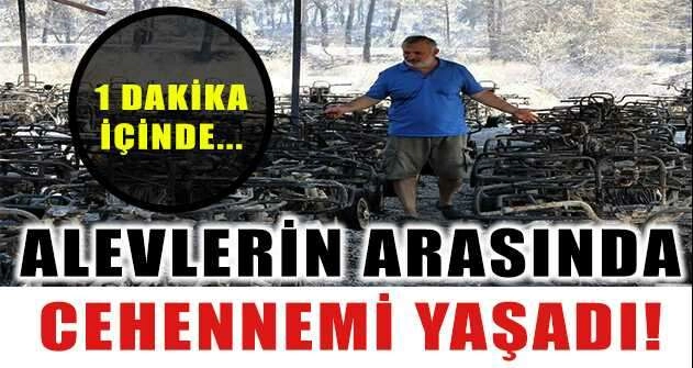 SONUNA KADAR MÜCADELE ETTİ İşletme sahibi Cengiz Kartal (58), tesisini alevlerden koruyabilmek için son ana kadar mücadele etti. Yangın ile daha fazla mücadele edemeyeceğini anlayan Kartal, aracına binerek kaçmak istedi. Bu kez yolda bir süre gittikten sonra alevlerin arasında kaldı. İşletme sahibi dört bir tarafını saran alevler arasında korku dolu anlar yaşadı. Kartal, bir süre sonra kollarından ve başından yaralanmasının ardından yangından kurtuldu. Yangın kontrol altına alındıktan sonra tesisine geri dönen işletme sahibi gördüğü manzara karşısında hayatının şokunu yaşadı. Geride hiçbir şeyin kalmadığını gören işletme sahibi zararının 7-8 milyon TL’ye yakın olduğunu ifade etti.