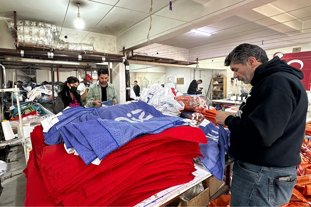 Günde üç vardiya çalışıp, 7 bin metrekare bayrak imal ediyorlar
