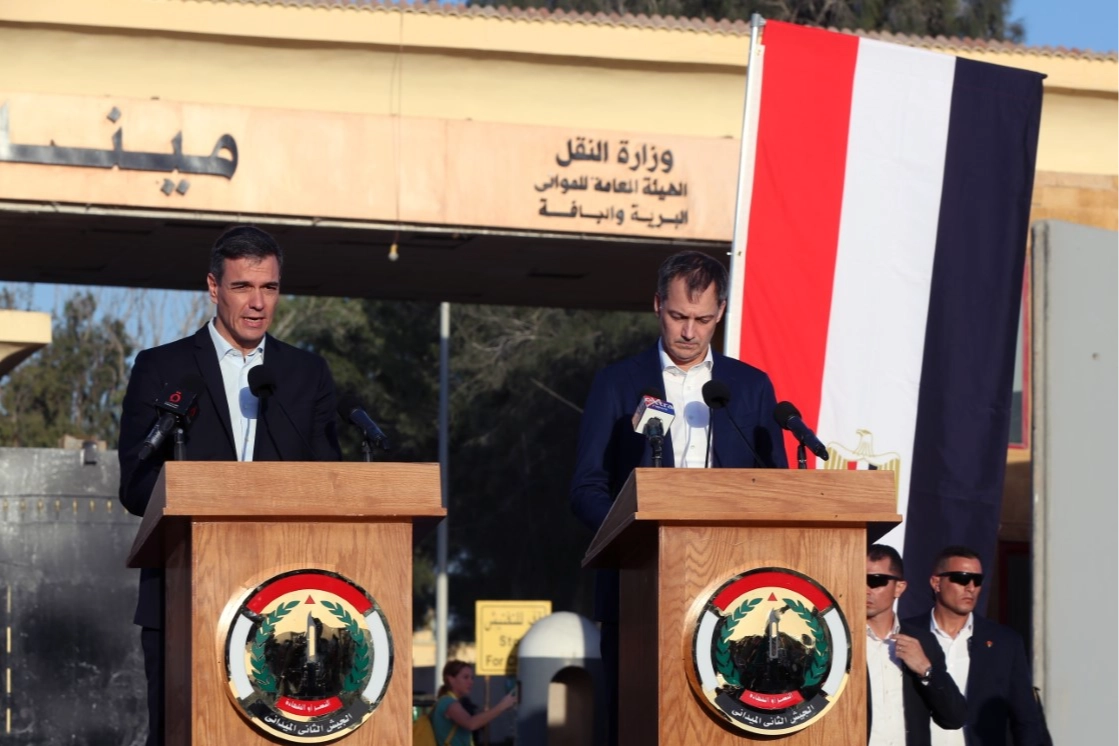 Sanchez, Belçikalı mevkidaşı De Croo ile birlikte Mısır-Gazze Şeridi arasındaki Refah Sınır Kapısı’nda gerçekleştirilen basın toplantısında, Gazze Şeridi’ndeki halkın içinde bulunduğu durumu düzeltmek için kalıcı bir insani ateşkes çağrısında bulunarak, "İsrail'in kendini savunma hakkını da yineliyorum ancak bunu uluslararası insancıl hukuk çerçevesinde yapması gerekiyor ve durum böyle değil. Binlerce erkek ve kız çocuğunun da aralarında bulunduğu sivillerin ayrım gözetmeksizin öldürülmesi kesinlikle kabul edilemez" ifadelerini kullanmıştı. Sanchez, "Uluslararası toplumun ve Avrupa Birliği'nin nihayet Filistin Devleti'ni tanımasının zamanı geldi. Bu, yeterince önemli ve AB olarak birlikte yapmamız gereken bir şey. Ancak bu olmazsa İspanya kendi kararlarını alacaktır" demişti. "Bir toplumun yok edilmesini kabul edemeyiz"