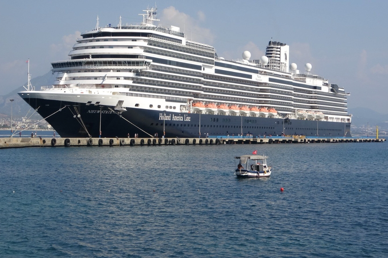 İsrail'in Hayfa Limanı'ndan yola çıkan Hollanda bandıralı 300 metre uzunluğundaki lüks kruvaziyer gemisi Nieuw Statendam, savaş nedeniyle İsrail'deki başka bir liman yerine rotasını Alanya'ya çevirdi. Çoğunluğu ABD vatandaşı olmak üzere 2 bin 542 turist Alanya Limanı'na demir attı. Hayfa Limanı'ndan sonra başka bir İsrail limanına gidecek olan yolcu gemisinin savaş nedeniyle rotasını değiştirdiğini söyleyen Alanya Liman İşletmesi (ALİDAŞ) Başkan Yardımcısı Kerim Taç, "Lüks kruvaziyer gemisi İsrail'de savaş patlayınca başka bir İsrail limanına gitmekten vazgeçerek rotasını Alanya'ya çevirdi. Gemide bin 300 Amerikalı, 300 Kanadalı, 300 Avusturyalı, İngiliz ve Belçikalı turistler bulunmakta. 957 mürettebatı bulunan lüks gemiden inen turistlerin çoğunluğu Alanya'nın tarihi ve turistik yerlerini gezmek için gemiden ayrıldılar. İçlerinde İsrailli turist bulunmamakta. Nieuw Statendam saat 18.00'de Kıbrıs'ın Limasol şehrine gitmek üzere Alanya Limanı'ndan demir alacak" dedi.
