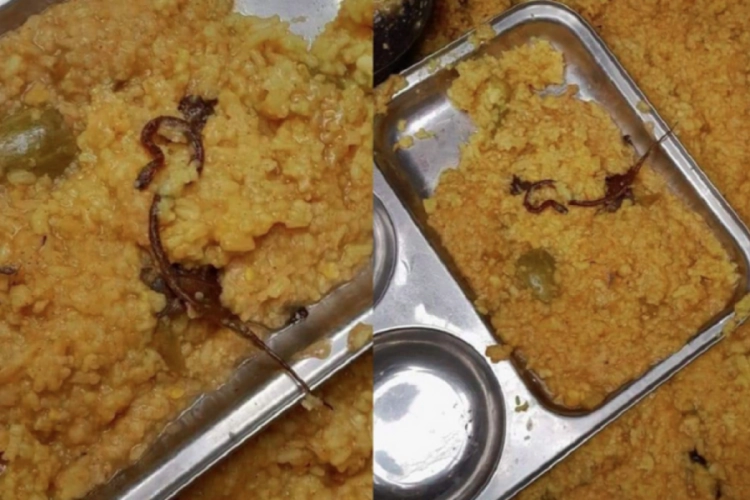 Hindistan'ın Bihar bölgesinde Jobgani'ye bağlı Amouna Öğrenci Yurdu'nda öğle yemeğinin içinden yılan çıktı.