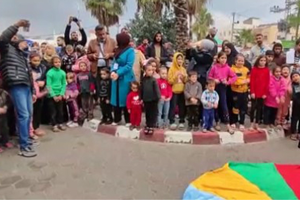 İsrail’in Gazze Şeridi saldırıları devam ederken savaştan en fazla etkilenen Filistinli çocuklar oldu. Okula gidemeyen, oynayamayan hatta gülmeyi unutan Filistinli çocuklar, her gün anne-babalarını ve yakınlarını kaybetmenin acısıyla yüzleşiyor. Korku dolu gözlerle dünya ülkelerinin görmezden geldiği kayıpları yaşayan çocukların yaralarını Filistinli bir aktivist grup sarmaya çalıştı. Filistinli aktivist grup, Gazze Şeridi’nde bulunan İsrail saldırılarında yaralananların getirildiği El Aksa Şehitleri Hastanesi’nde yakınlarını kaybeden çocukları güldürebilmek için eğlence organize etti. Evlerinden edilen, ailelerinin tedavisinin devam ettiği hastanede kalan onlarca çocuk, hastane avlusunda bir araya geldi. Şarkılar söyleyen, oyunlar oynayan çocuklar kısa sürede olsa eğlenceli anlar yaşadı. Saldırı seslerinden, korku ve endişeden uzakta çocukları eğlendirmeye çalışan gönüllüler, hastane bahçesinde savaşın ortasında olduklarını unutturmaya çalıştı.