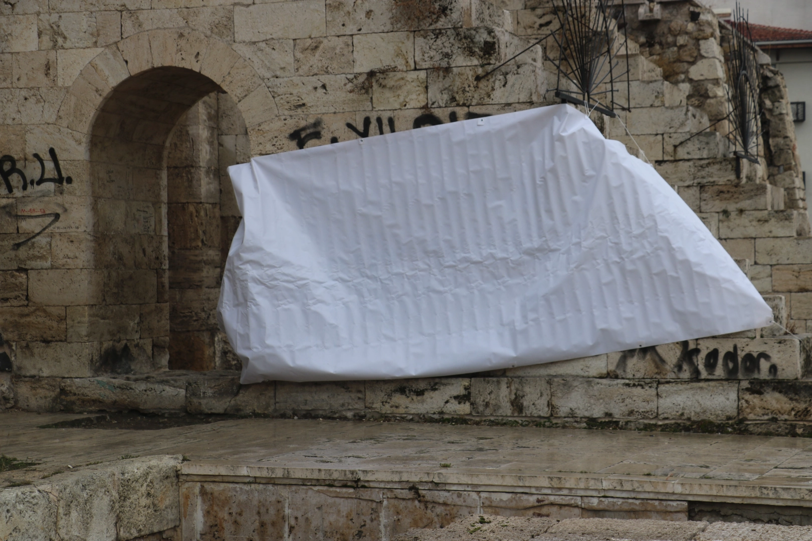 "Yazıyı silsinler" Esnaf Resmi Yaşar, çok uyarılarda bulunduğunu dile getirerek “Hiç güzel bir şey değil. Söylüyorum beni dinlemiyorlar. Gerçekten kaç kere uyardım, dedim yasak çıkmayın. Kaç kere gençlere söyledim, bazıları bana uydu. Beni dinledi, çıktı gittiler. O gün akşama doğru gençler geldiler yazılar yazdılar gittiler. Benim haberim yoktu. Ama haberim olsaydı izin vermezdim. Branda örtmek çözüm olmadı. Ceza alsınlar. Onlara ders olsun. Niye böyle yaptılar. Bizim eserlerimize herkes geliyor, geziyor ne güzel. Ama niye böyle yapıyorlar bende anlamıyorum. Benim istediğim brandayı kaldırıp silsinler. Güzel bir şey olsun” ifadeleri kullandı.