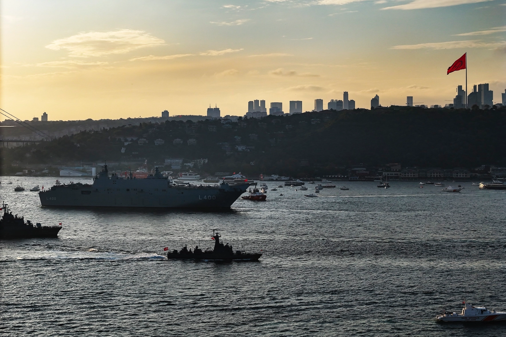 Cumhuriyet'in 100. yılı dolayısıyla Milli Savunma Bakanlığına bağlı 100 gemi, İstanbul Boğazı’nda geçiş törenine saat 17.00'da başladı. TCG Anadolu'nun da içinde olduğu fırkateynler, ada sınıfı korvetler, mayın avlama gemileri, karakol gemileri, amfibi gemiler, hücumbotları, denizaltılar ve yardımcı sınıf gemiler olmak üzere 100 gemi Boğaz'dan geçiş yaptı. Geçiş sırasında TCG Anadolu olmak üzere tüm mürettebat, Vahdettin Köşkü’nde bulunan Cumhurbaşkanı Recep Tayyip Erdoğan’ı selamladı.