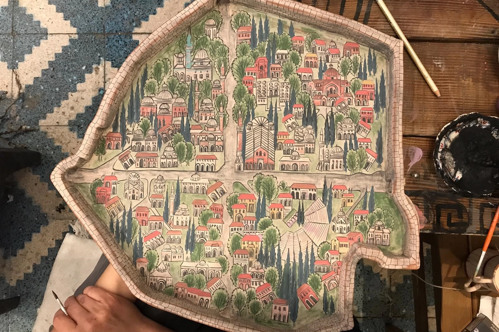 Kültür ve Turizm Bakanlığı'nın ‘Somut Olmayan Kültürel Miras Taşıyıcısı' unvanına sahip Künen'in hazırladığı minyatür çalışmada, kentin simgesi hâline gelmiş tarihi yapılar, İznik surları, anıtsal kapılar ve kentin kültürel dokusunu temsil eden önemli noktalar yer alıyor. El emeği göz nuru bu özel eser, geleneksel İznik çini sanatının modern bir yorumla aktarıldığı nadide bir örnek.