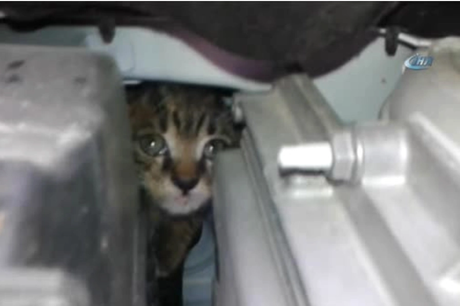 Dörtyol mevkii Gaziosmanpaşa Caddesi çıkışında bulunan trafik ışıklarında yavru kedi birden yolu ortasına atladı. Aracında güvenlik kamerası olan bir vatandaş tarafından kurtarılmak istenen kedi, bu kez ise ışıklarda bulunan hafif ticari aracın motor kısmına girdi. Yaşanan durum üzerine bölgeye Yalova Belediyesi İtfaiye Müdürlüğü ekipleri geldi. Bir süre burada kediyi bulunduğu yerden çıkarmaya çalışan ekipler, daha sonra aracı müdürlük binasına götürdü. Ekipler burada kediyi sıkıştığı yerden çıkararak Veteriner İşleri Müdürlüğüne teslim etti.