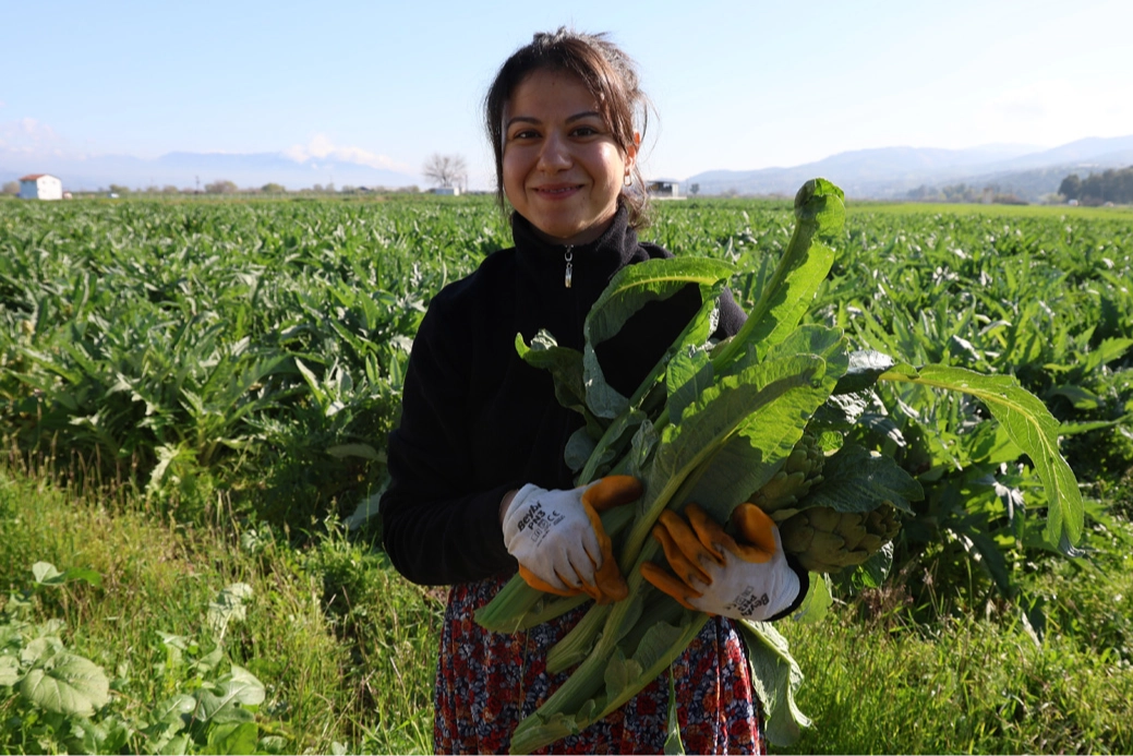 Ailesine ait tarlada enginar üreticiliği yapan Aydın’ın en genç girişimci ve üretici kadınlarından Özge Yüksel, "Sezona bu yıl biraz erken başladık. Havalar geçen seneye göre daha ılık geçti, soğuklar uzun sürmedi. Enginarlarımız ’iyi tarım’ sertifikalı. Diğer yetiştirilen enginarlardan farlı. İçerisinde herhangi bir hormon yok. Bizim sezonumuz çok şükür güzel gidiyor. Hayvan gübresi ile ilerliyoruz. Artık enginar lüks bir ürün olmaya başladı. Fiyatlar biraz pahalı. Toptanda tanesi 20 TL’den başladı daha da artarak devam ediyor. Bunun sofraya ulaşması 40 TL’yi buluyor. Biz en son lokantada enginarı İstanbul’da yedik ve bir tanesi 400 TL fiyat yazılmıştı" ifadelerini kullandı.
