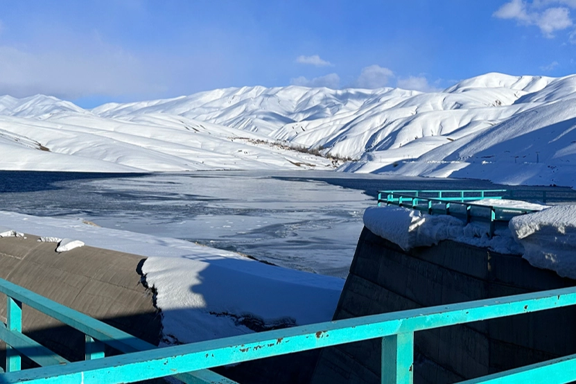 Yüksekova ilçesinde etkili olan kar yağışının ardından hüküm süren dondurucu soğuk hayat durma noktasına getirdi. Yüksekova-Esendere kara yolu üzerindeki Dilimli Barajı’nın yüzeyi ise etkili olan soğuklar nedeniyle dondu.