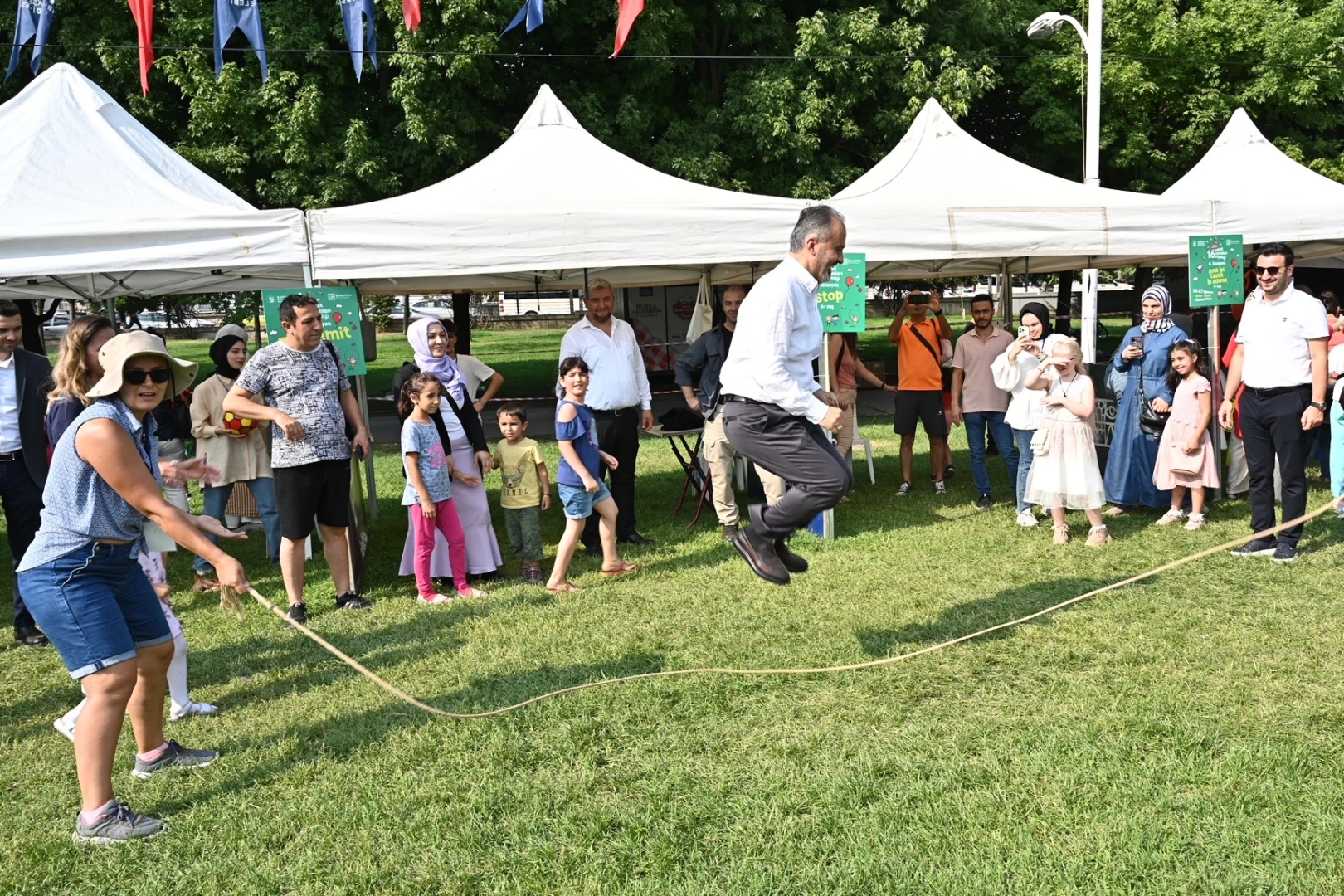 Alana kurulan oyun istasyonlarında çocuklar, istop, saklambaç, dokuztaş, yakan top, don ateş, körebe, cilli, mendil kapmaca ve ip atlama gibi oyunları hem öğrendi hem oynadı. Sokak oyunlarının öğretilerek, yeniden canlandırılması hedeflenen şenlikte 7’den 77’ye herkes oyunların eğitici, bir o kadar da mücadeleci dünyası ile buluştu. Alandaki istasyonları gezen Büyükşehir Belediye Başkanı Alinur Aktaş, izlemekle yetinmeyip, çocuklarla birlikte oyunlara eşlik etti. Yakan top, cilli, çivili tahtada maç oyunlarına katılan Başkan Aktaş, ip atlayarak çocuklarla birlikte keyifli zaman geçirdi.