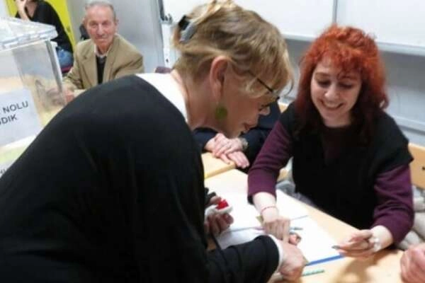 Oy kullandıktan sonra mührü elinde unuttan Aksu, görevlinin uyarısıyla teslim etti.