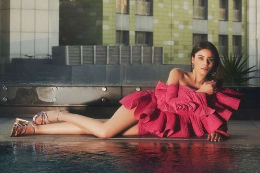 Pembe elbisesi ile göz kamaştıran ve saçlarını açan Türkoğlu, kusursuz fiziğiyle beğeni yağmuruna tutuldu.