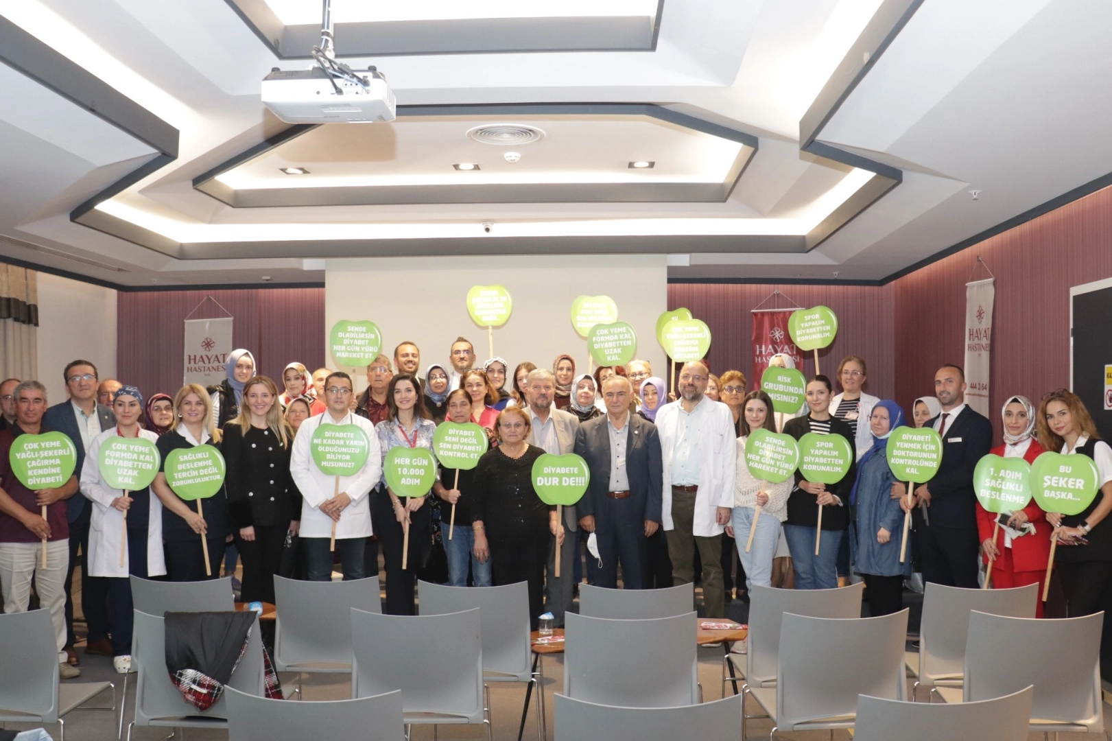 Dünya Diyabet Günü etkinlikleri çerçevesinde diyabete dikkat çekmek ve farkındalık oluşturmak için bir dizi etkinliğe imza atan hastane, düzenlediği seminerle şeker hastalığının sağlığa olan etkilerine vurgu yaptı. Hastanenin toplantı salonunda organize edilen seminere; Hayat Hastanesi Başhekimi Dr. Fatih Özkul, Yönetim Kurulu Başkan Yardımcısı Betül Kabalar, Yönetim Kurulu Üyesi İbrahim Özkul, Dahiliye Uzmanları Dr. Ali Nizamoğlu, Dr.Muhittin Pekuz, Dr. Mehmet Erdoğmuş, Diyetisyen Fatma Hallaç Uslu ve çok sayıda vatandaş katıldı.