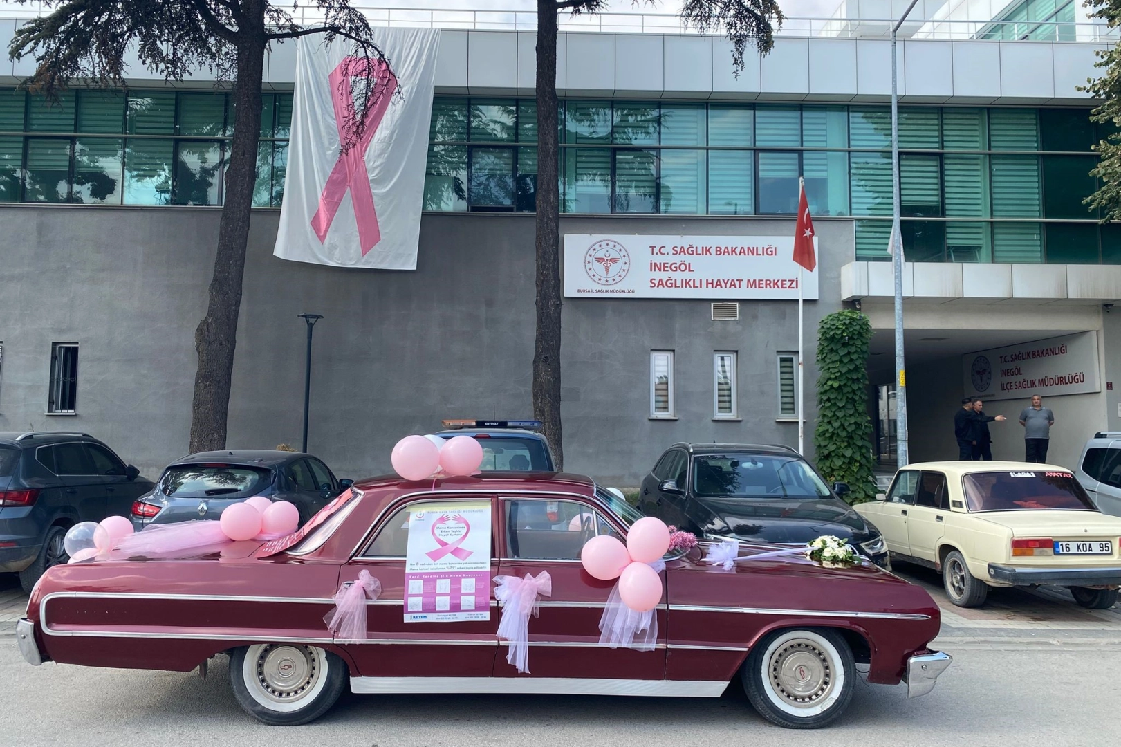 Farkındalık etkinliği kapsamında klasik bir otomobil, pembe kurdele ve balonlarla süslenerek İnegöl sokaklarında gezdirildi. Etkinlikle, vatandaşların meme kanserinde erken teşhisin önemine dikkat çekilmesi hedeflendi.