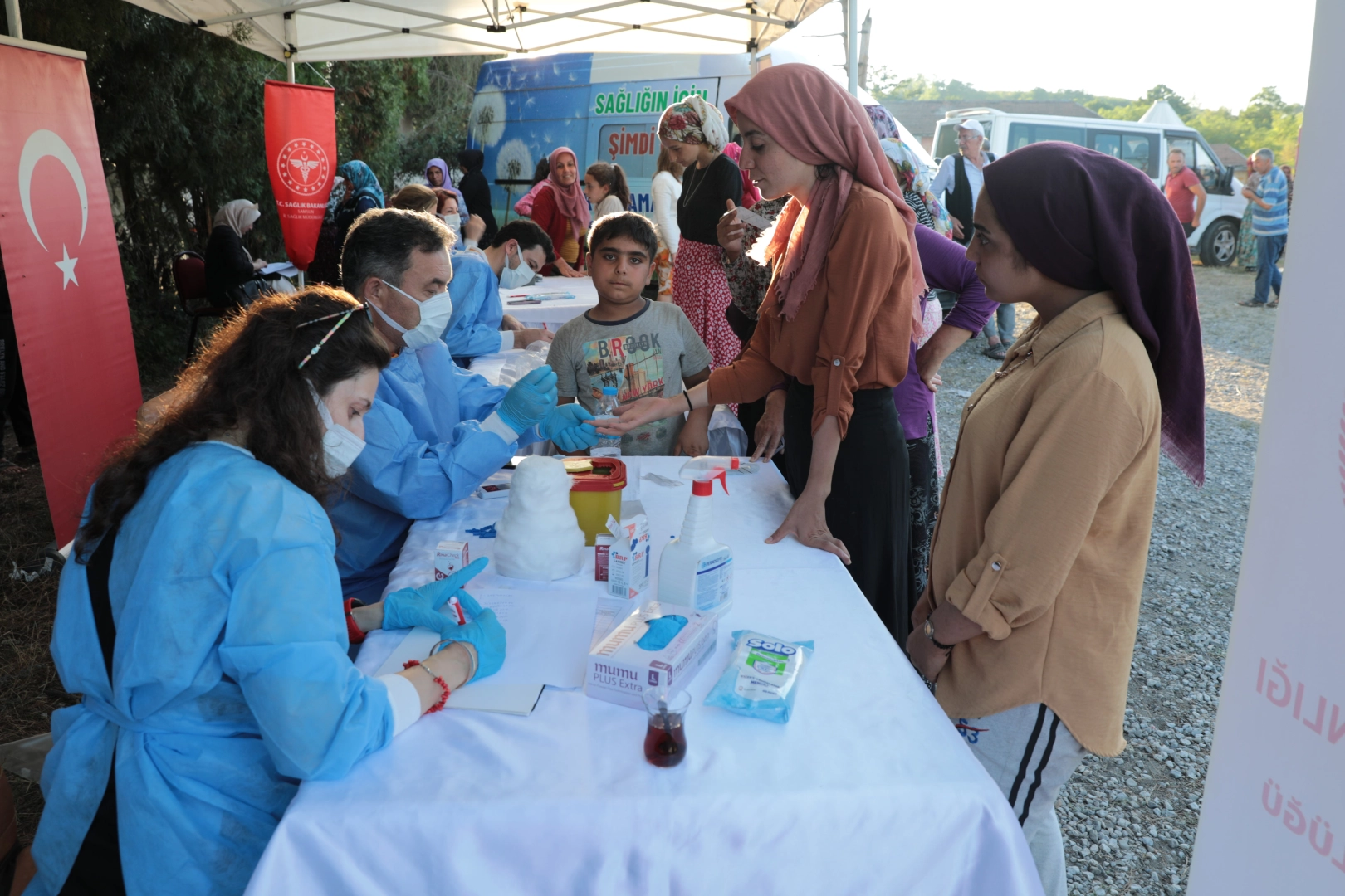 Şanlıurfa’dan Samsun’a fındık bahçesinde çalışmak üzere gelen mevsimlik tarım işçilerinin sağlık kontrolleri, Sağlık Bakanlığı Samsun İl Sağlık Müdürlüğü'ne bağlı ekipler tarafından gerçekleştiriliyor. İşçiler kanser taraması, diş sağlığı, solunum fonksiyonu gibi testlerden geçiyor. Hastalık şüphesi olanlar ise ilgili hastanelere yönlendiriliyor. Tekkeköy’ün Balcalı Mahallesi’nde kurulan sağlık çadırında teste giren işçilerin sağlık kontrolleri uzmanlar tarafından yapılıyor. İşçilerin kaldıkları mekanlara gidilerek kanser tarama aracının içerisinde meme kanseri taraması uygulanırken, kurulan çadırda işçilerin insülin değerlerine, boy ve kilo endeksine, tansiyonlarına ve solunum durumlarına bakılıyor. “Yapılan bu çalışmalarla yaklaşık 2 bin kişiye ulaşmayı hedefliyoruz” Halk Sağlığı Hizmetleri Başkanı Dr. Hatice Öz, “Mevsimlik tarım işçilerinin ve ailelerinin sağlık hizmetleri için sağlık müdürlüğümüz mobil ekipler kurdu. Mobil ekiplerimizce işçilerinin ve ailelerinin sağlık hizmetlerini nerelerden alacaklarını bilgilendirmek ve sağlık taramalarını yapmak için buradayız. Sağlık taramaları dahilinde, kanser taraması, ağız ve diş sağlığı taraması, kronik hastalık taraması yapmaktayız. Ayrıca kampları ziyaretlerimizde kan şekeri, tansiyon, boy-kilo ölçümleri yaparak fonksiyon testi yapıyoruz. Çocuklara ağız diş sağlığı çerçevesinde 'flor jel' uygulaması yapıyoruz. İşçi ve ailelerin üreme sağlığı, bulaşıcı hastalıklar, çevre sağlığı konularında eğitim vererek bu hizmetleri nereden alacaklarını ve nasıl alacakları konusunda bilgilendiriyoruz. Yapılan bu çalışmalarla yaklaşık 2 bin kişiye ulaşmayı hedefliyoruz. Tespit ettiğimiz vakalar olursa da onları ilgili hastanelerimize yönlendiriyoruz. İlçe Sağlık Müdürlüğü’müz aracılığı ile bu yönlendirmeleri yapmaktayız” dedi.