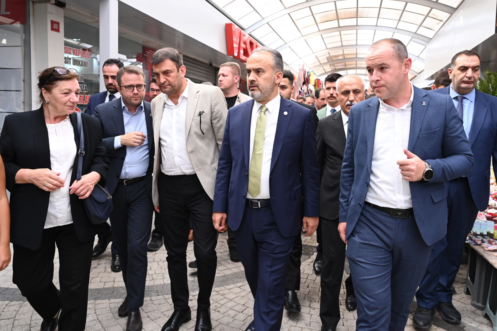 Bursa Büyükşehir Belediye Başkanı Alinur Aktaş, beraberindeki Yenişehir Belediye Başkanı Davut Aydın ve MHP Bursa İl Başkanı Muhammet Tekin ile birlikte çalışmaların tamamlandığı Balıbey Çarşısı’nı gezerek esnafla sohbet etti.