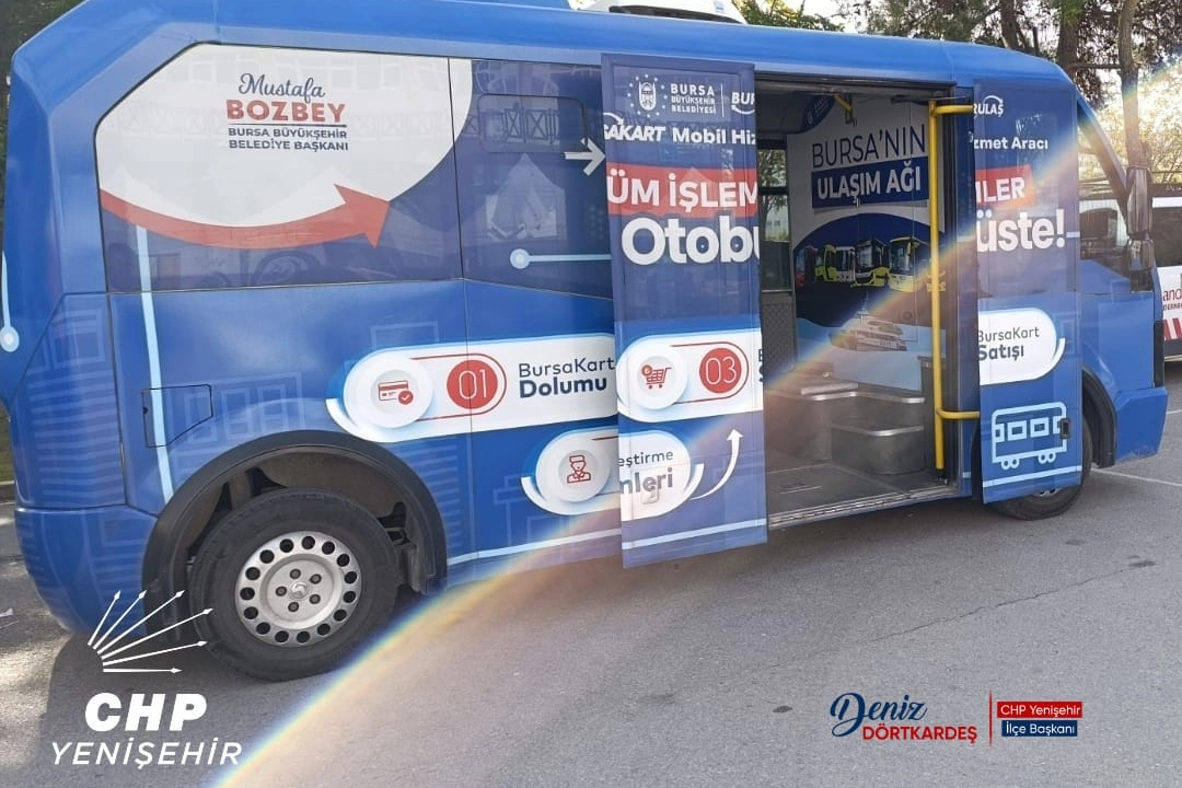CHP Yenişehir İlçe Başkanı Deniz Dörtkardeş, Bursa Büyükşehir Belediyesi’ne ait BURSAKART mobil hizmet aracının 20-21 Ekim Pazartesi ve salı günü saat 09:00-17:00 aralığında Yenişehir'de eski Belediye Meydanında vatandaşların hizmetinde olacağını duyurdu. Dörtkardeş, BURSAKART mobil hizmet aracında kart dolumu, yenileme ve kart talebi işlemlerinin yapılabileceğini kaydetti.
