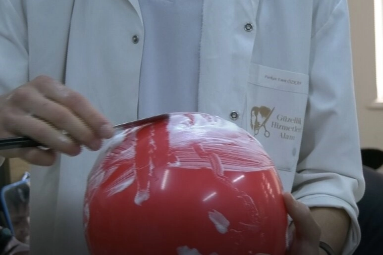 Yenişehir Hüma Hatun Mesleki ve Teknik Anadolu Lisesi Güzellik Hizmetleri Öğretmeni Sinan Eşkin, "Bu teknik Osmanlıdan günümüze kadar gelen bir teknik. Müşteri almadan önce öğrencilerimiz balonla uygulama yapıyorlar. Balonu patlatmayanlar sınavı geçtikleri takdirde gerçek müşteriyle baş başa kalıyorlar. Uygulama yapan öğrencilerimiz balonu patlatmadıkları için sınavı geçtiler. Okulumuzda hem kız hem de erkek öğrencilerimiz eğitim alabiliyor. Bu eğitimlerini 12.sınıfta staj eğitimleriyle işletmelerde daha da pekiştiriyorlar. Öğrencilerimiz mezun olduktan sonra kendi işyerlerini açabiliyorlar. İki yıl ön lisans programı okuyabiliyorlar. 4 yıllık fakülte eğitimi görüp alanlarında öğretmenlik de yapabiliyorlar" diye konuştu.