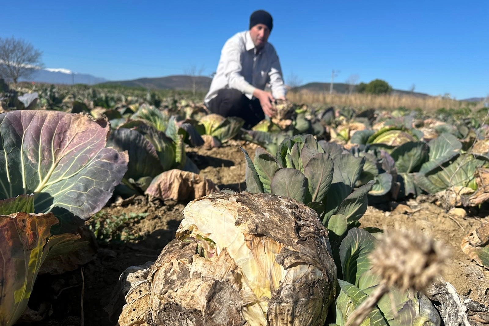 Yeni üretim sezonu geldiğini ve tarlasını değerlendirmek istediğini belirten Akkuş, "Bunun yerine başka ürün ekip zararı kurtarmak istiyorum. Traktörümle birazdan lahanayı parçalayacağım ve tarlayı süreceğim. Şu anda 25 bin lahana yatıyor tarlada. Tarlaya gübre olacak bu lahanalar. Tüm emeklerimiz paramız toprağa karışacak" dedi.