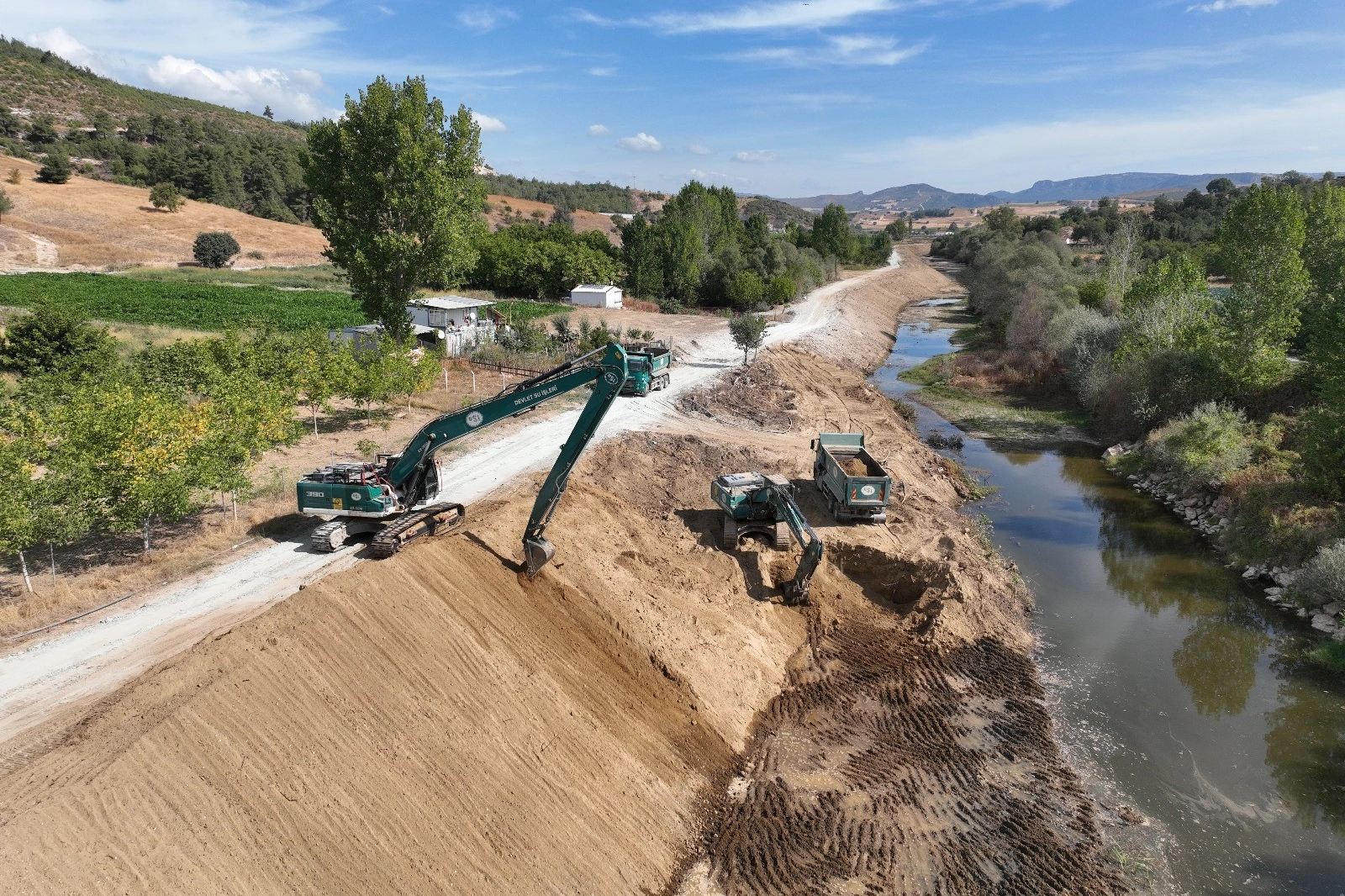 Bursa'da ekipler baraj, gölet ve sulama tesislerinin yanı sıra taşkın koruma ve ıslah çalışmalarıyla da çiftçileri desteklemeye, vatandaşlara taşkınların vereceği zararlardan korumaya devam ediyor.