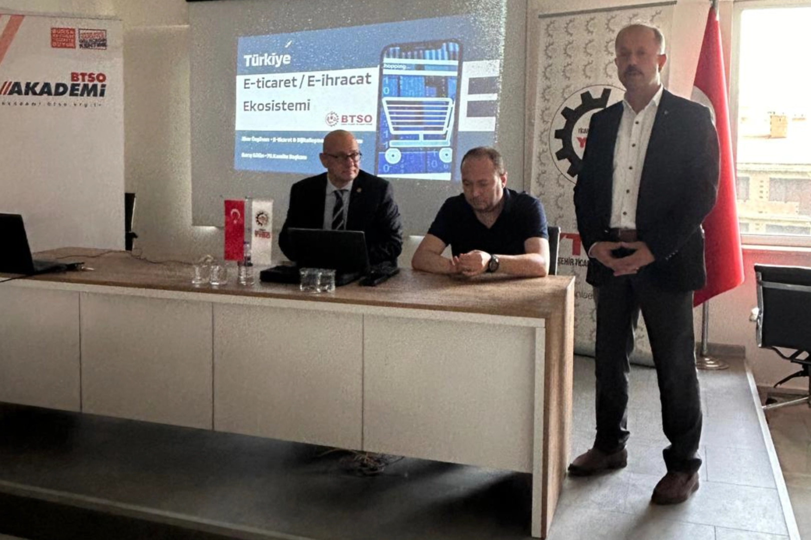 BTSO E-Ticaret ve Dijitalleşme Konseyi Başkanı İlker Özgüven ve BTSO E-Ticaret Komitesi Başkanı Barış Sülün tarafından gerçekleştirilen eğitimde, E-ticarette ödeme yöntemleri, sosyal ticarette öne çıkan ödeme metotları, e-ticaretin gelişim süreci, e-ticaret sitesi kurmaya yönelik altyapı detayları, e-ticaret faaliyetlerinin güven içinde yürütülebilmesi amacıyla, e- ticaret yaparken dikkat edilmesi gereken yasal düzenleme ve mevzuatlar hakkında bilgilendirmede bulundular.