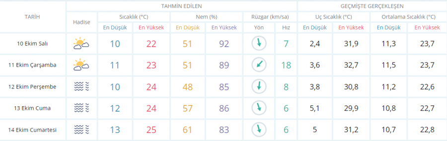 5 GÜNLÜK HAVA DURUMU TAHMİNİ