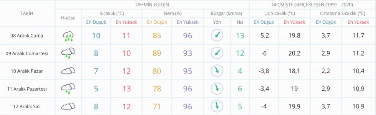 5 GÜNLÜK HAVA DURUMU TAHMİNİ