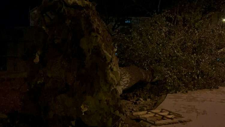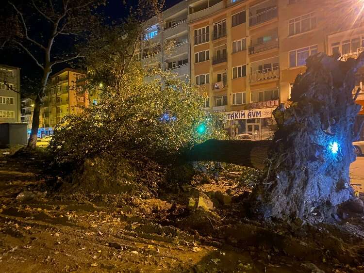 Bursa'nın İnegöl ilçesinde gece saatlerinde etkisini artıran lodos 200 yıllık tarihi 2 çınar ağacını yıktı. Olayda, şans eseri ölen ya da yaralanan olmadı.