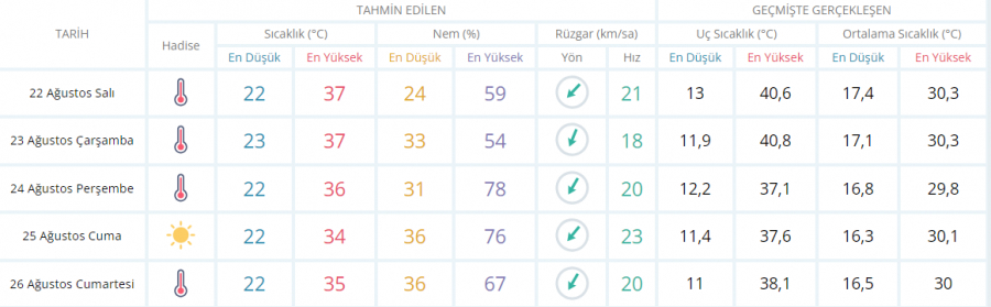 5 GÜNLÜK HAVA DURUMU TAHMİNİ