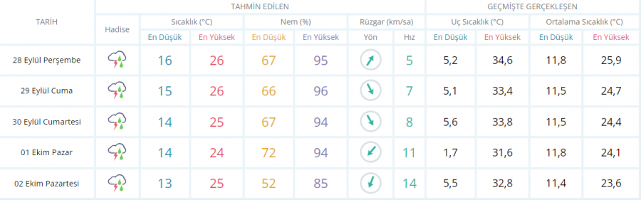 5 GÜNLÜK HAVA DURUMU TAHMİNİ